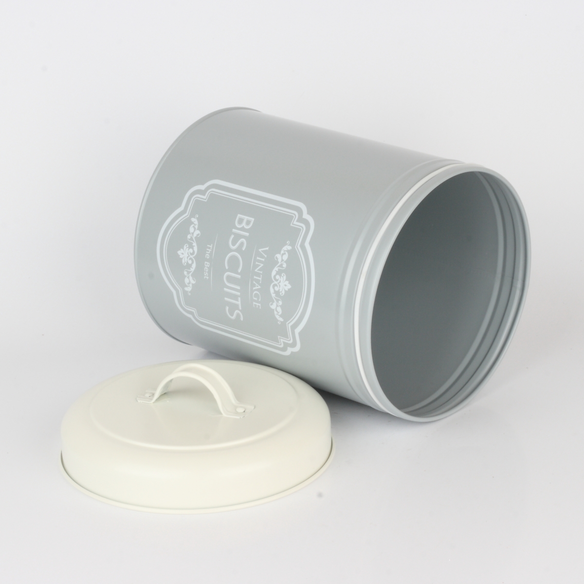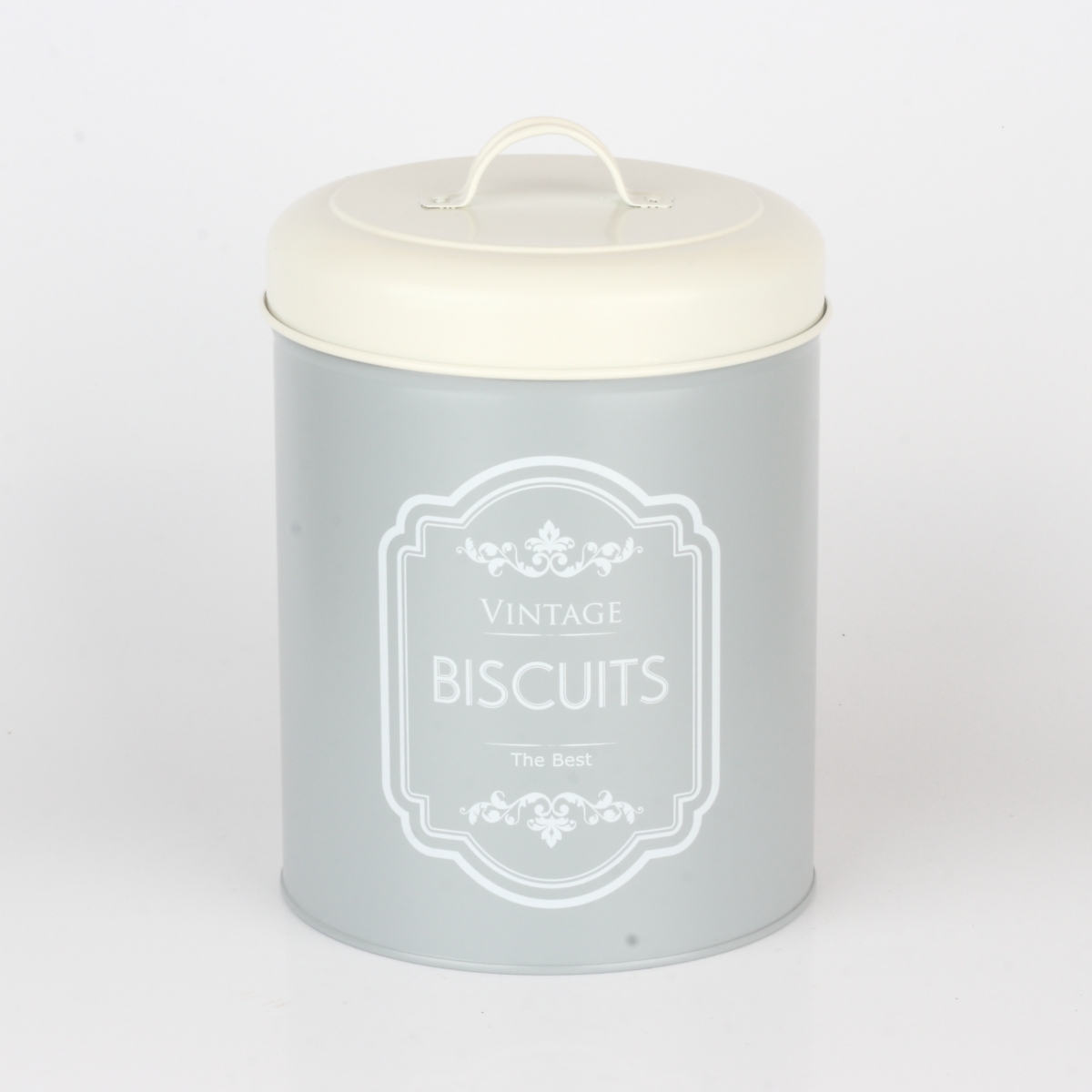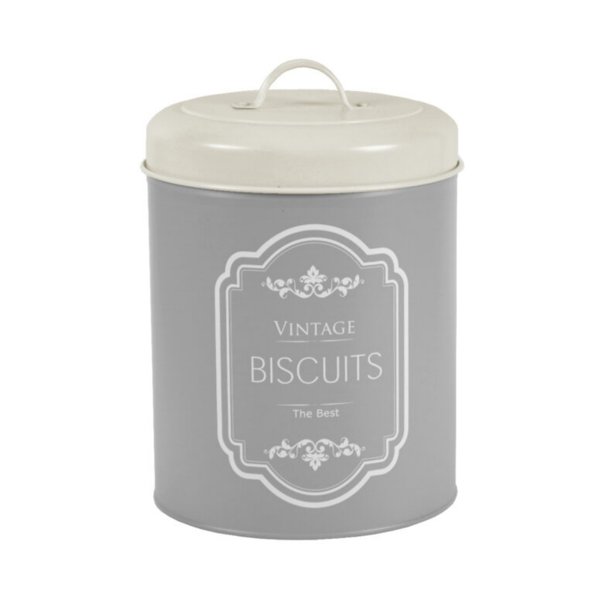 Dóza na sušienky šedá VINTAGE z elegantnej vintage kolekcie kuchynských dóz na potraviny, ktorú si vďaka jej jednoduchosti a decentnosti zamilujete. Kolekcia, ktorá sa hodí snáď do každej kuchyne a dokáže byť nenápadná a napriek tomu neprehliadnuteľná.