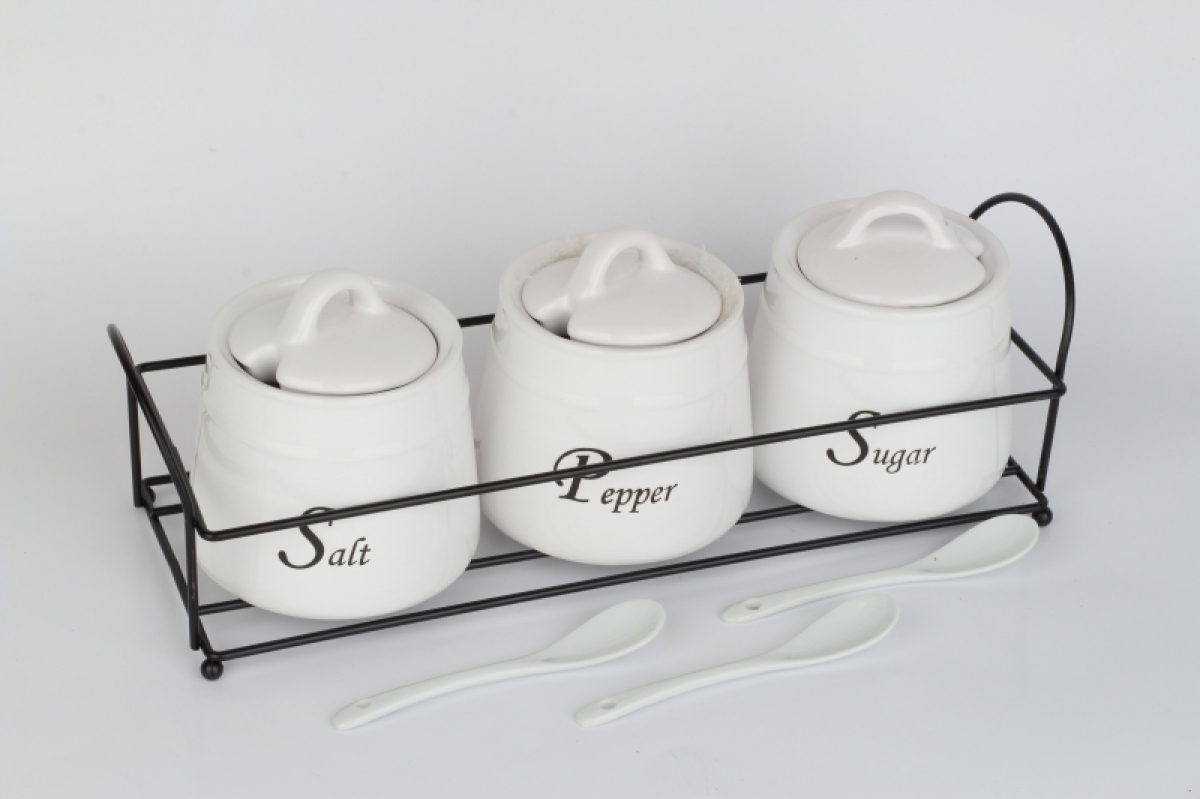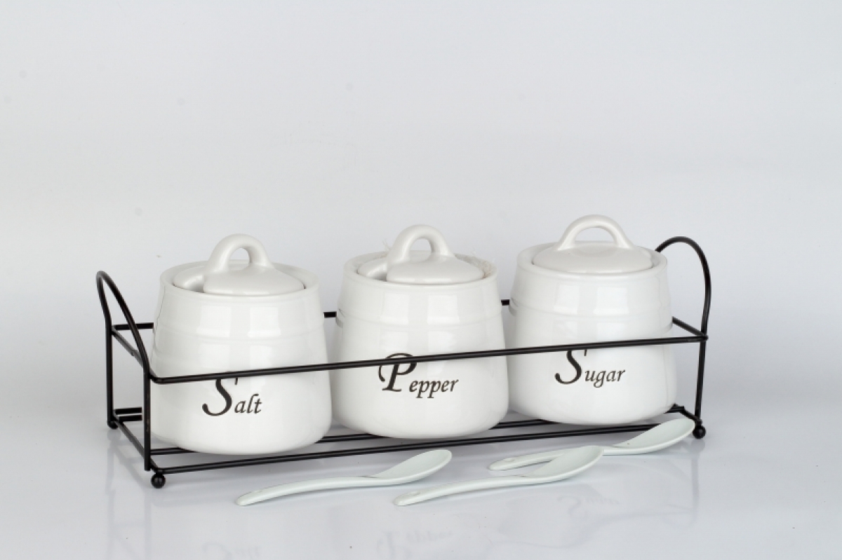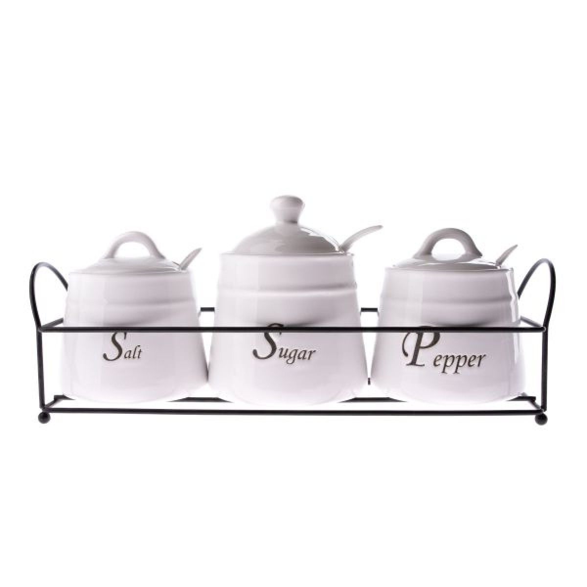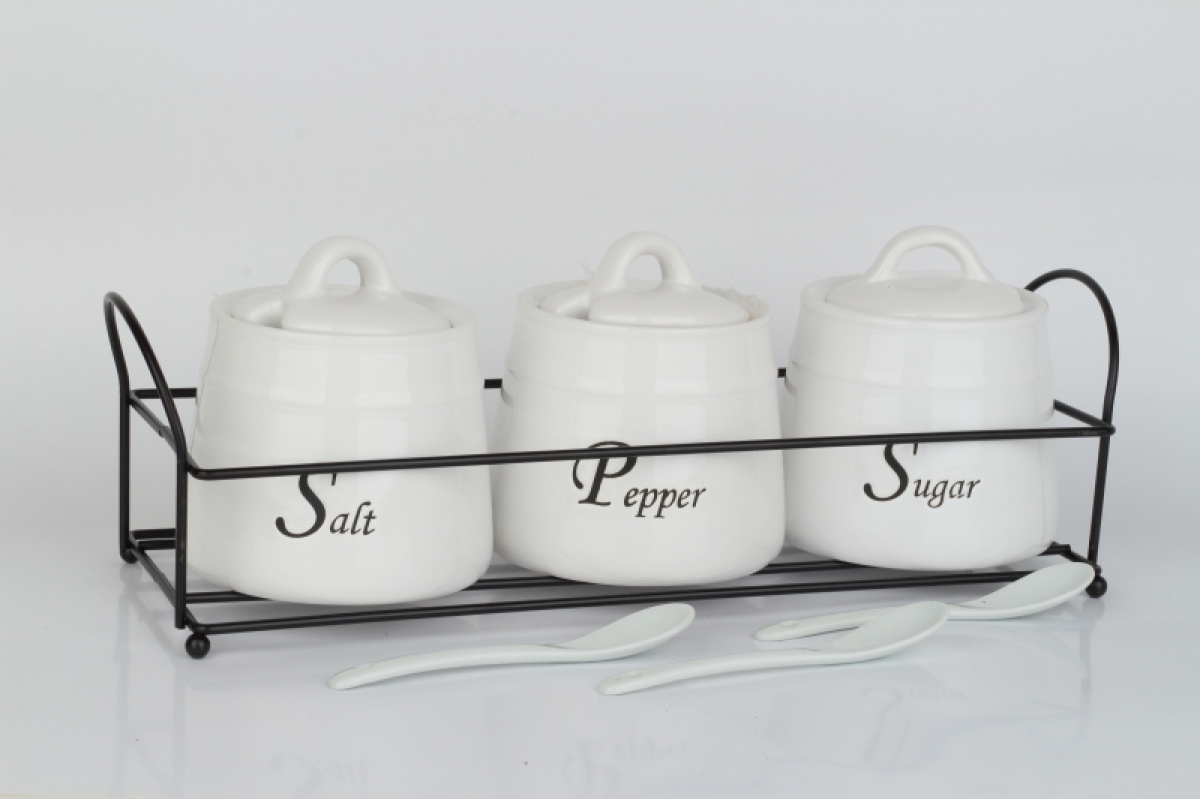 Obsahom prenosky sú tri dózy na potraviny. Na cukor, soľ a korenie s objemom 0,43 l a rozmeroch 10,5cm priemer s výškou 12cm.
