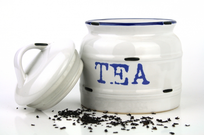 Na dózach sú potraviny označené v angličtine - sugar, tea a coffee.