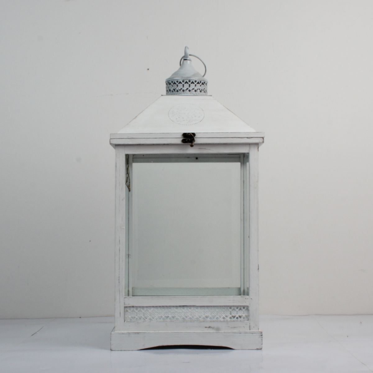 Drevená biela lampáš s patinou 65cm