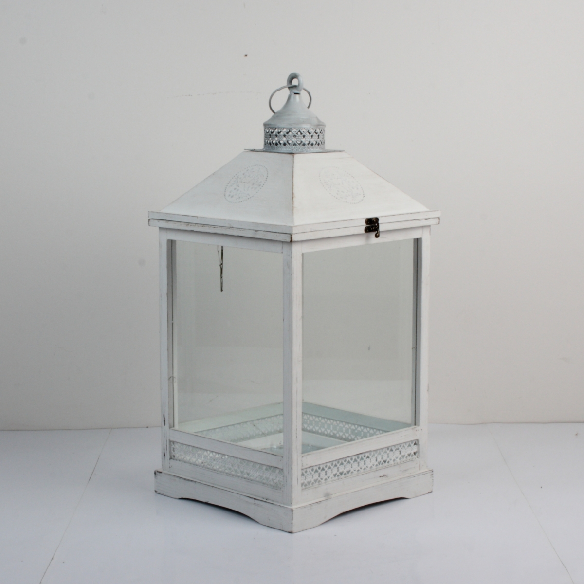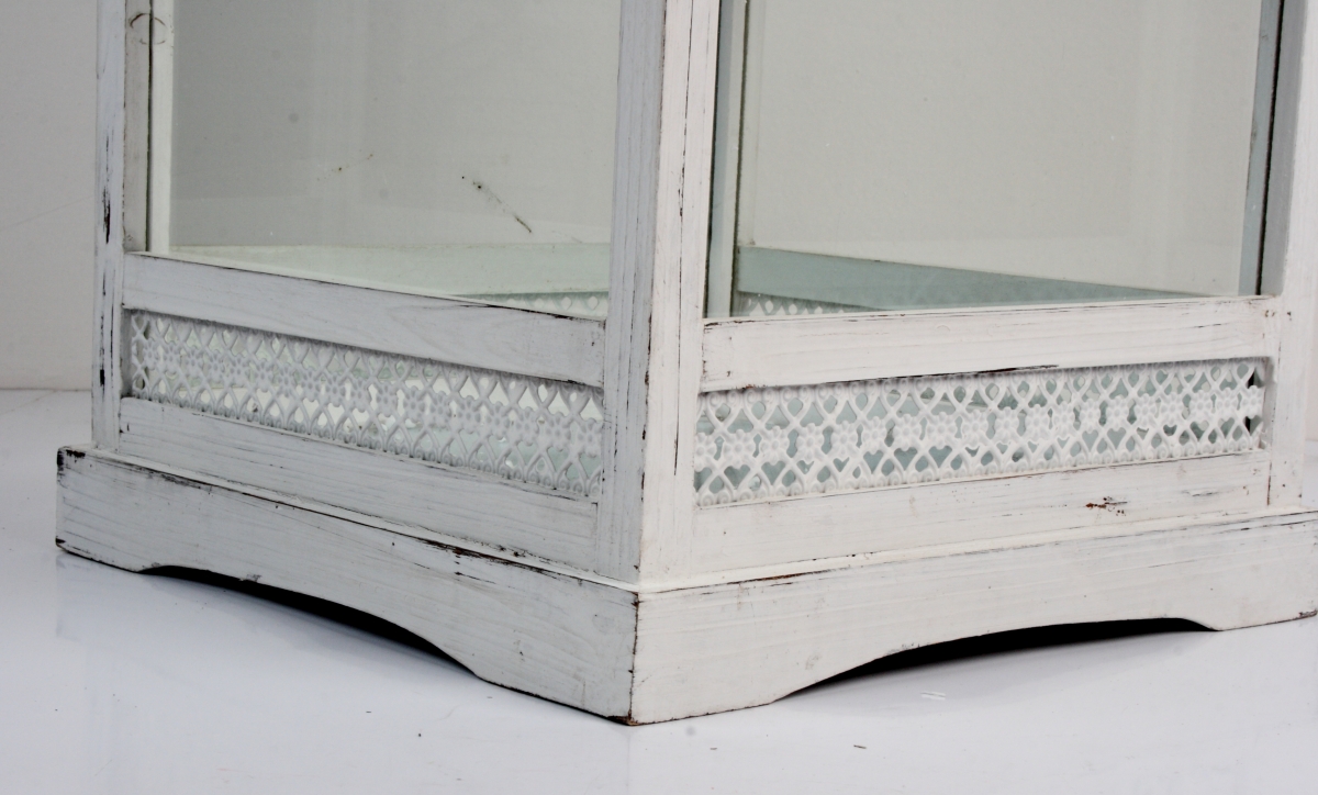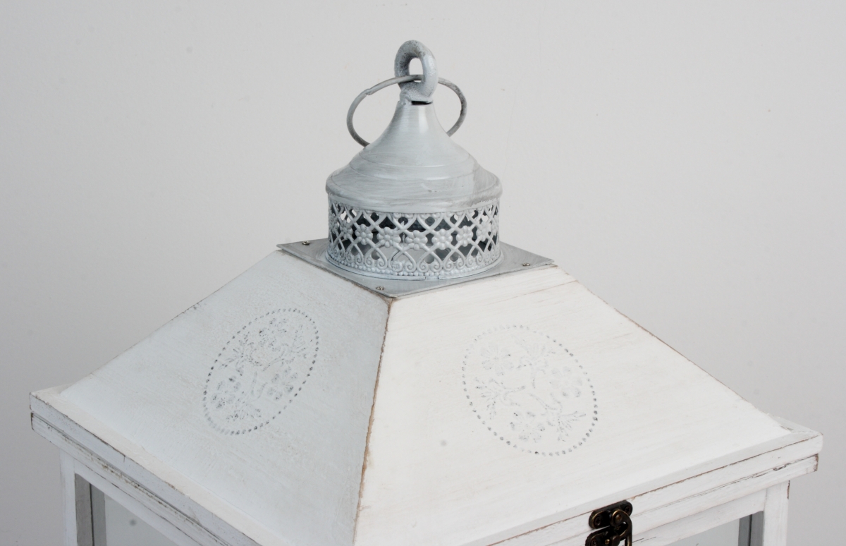 Drevená biela lampáš s patinou 65cm navodí kúzelnú atmosféru - doma i na záhrade pod pergolou.