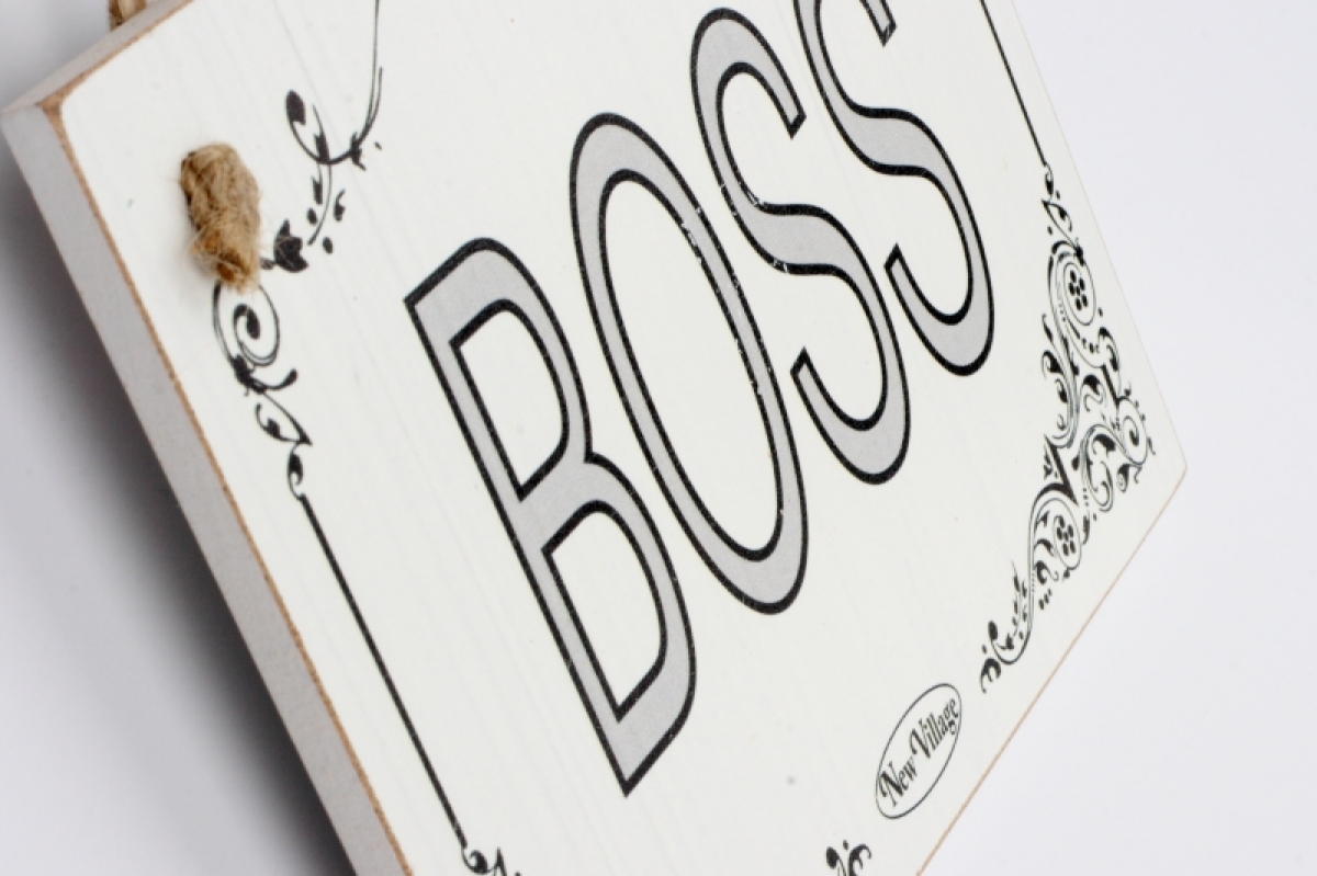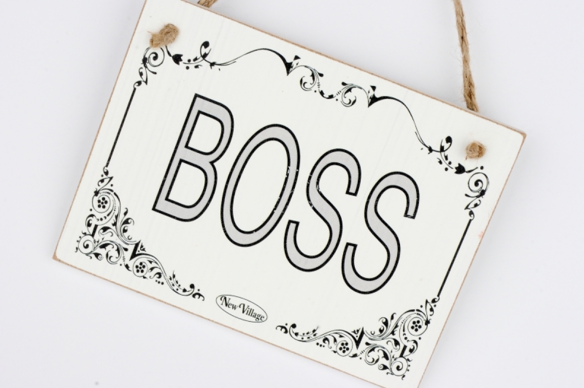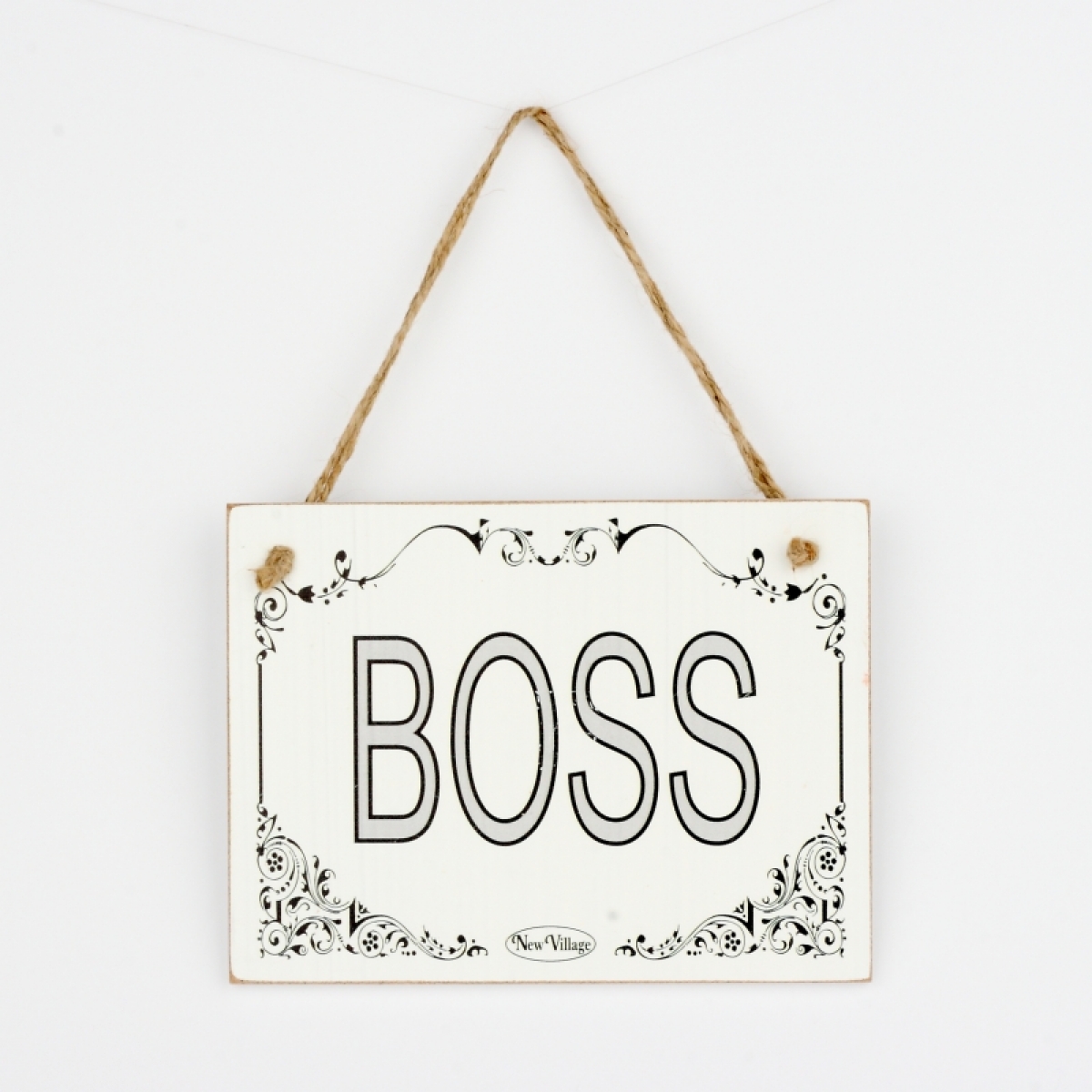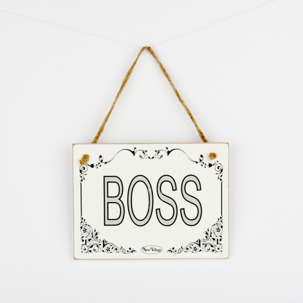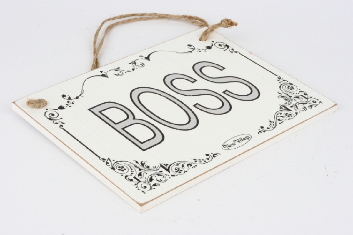 Drevená ceduľa BOSS 20x15cm na zavesenie na dvere alebo stoličku.