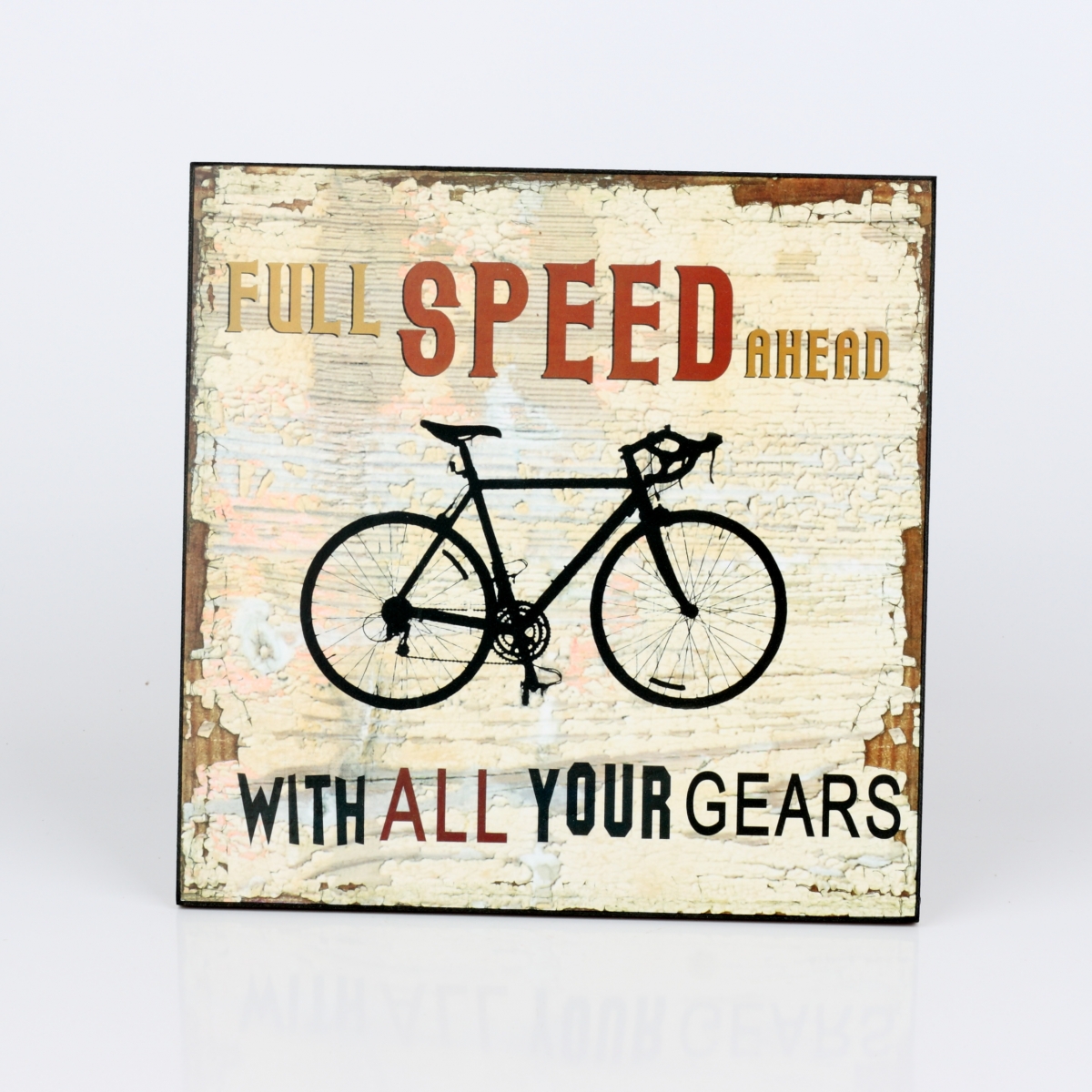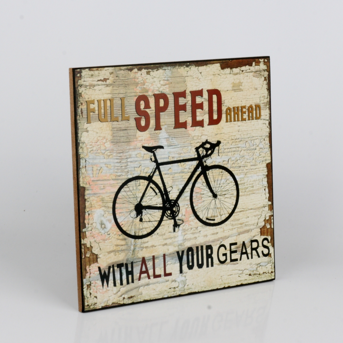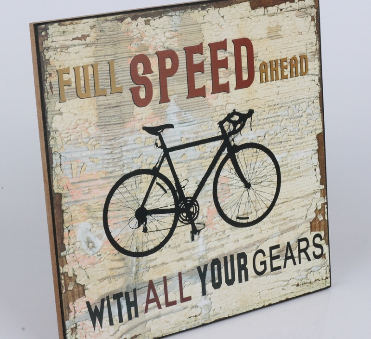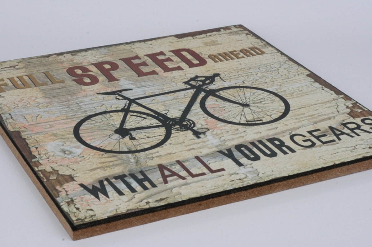 Dřevěná cedule Plná rychlost vpřed 25x25cm pro milovníky adrenalinu a jízdy na dvou kolech.