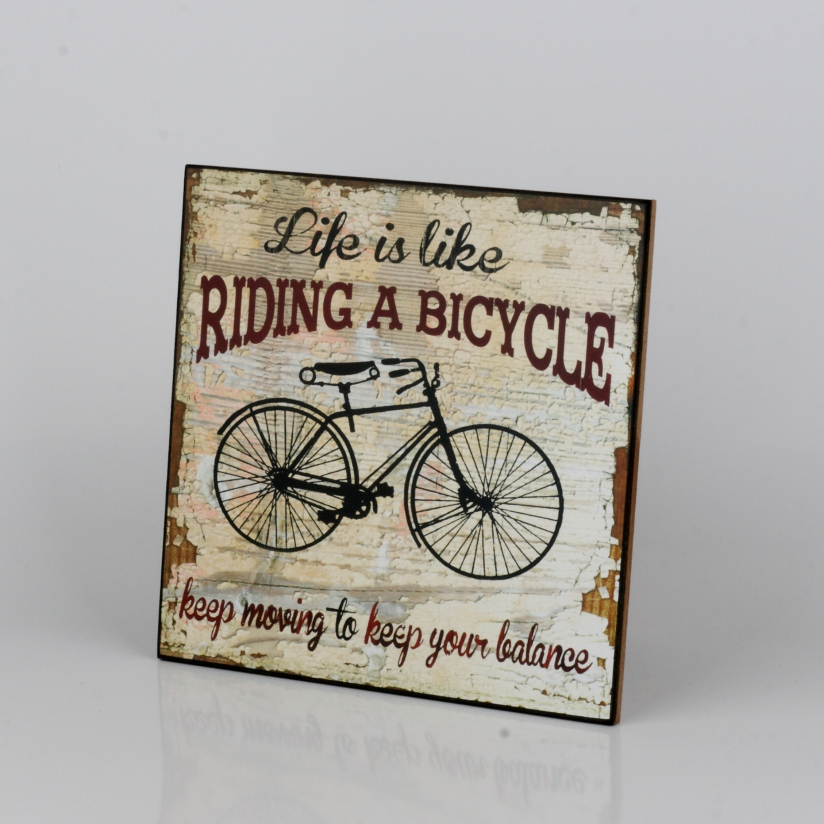 Drevená ceduľa Life is like riding a bicycle 25x25cm pre milovníkov adrenalínu a jazdy na dvoch kolesách.