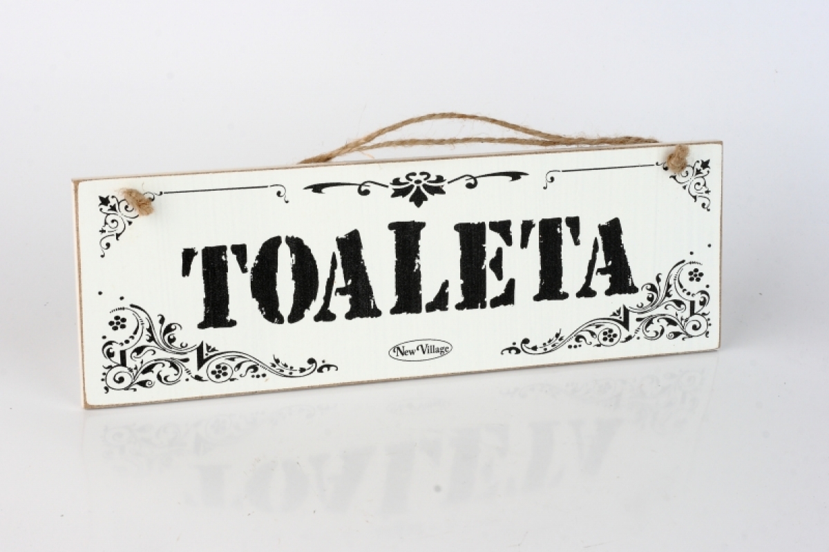 Drevená ceduľa na dvere Toaleta 30x9cm prezradí hosťom správny smer a bude pekným doplnkom dverí.