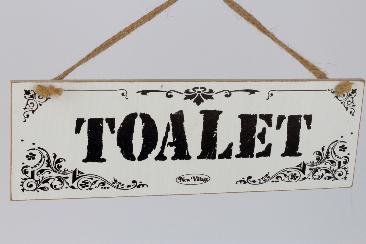 Drevená ceduľa na zavesenie Toaliet 30x10cm