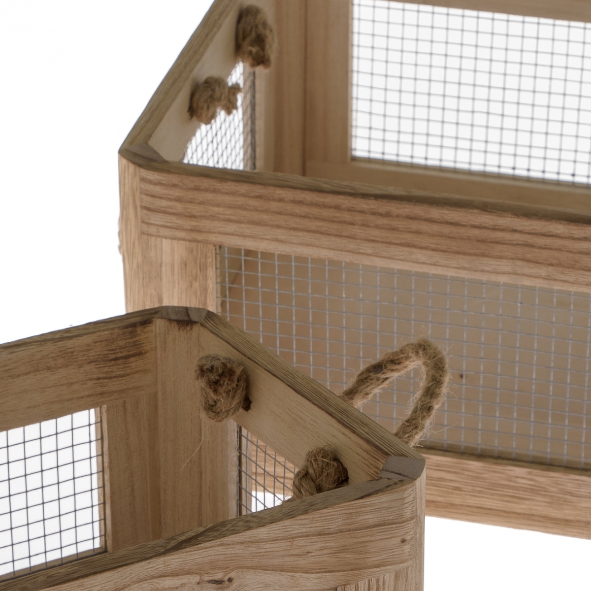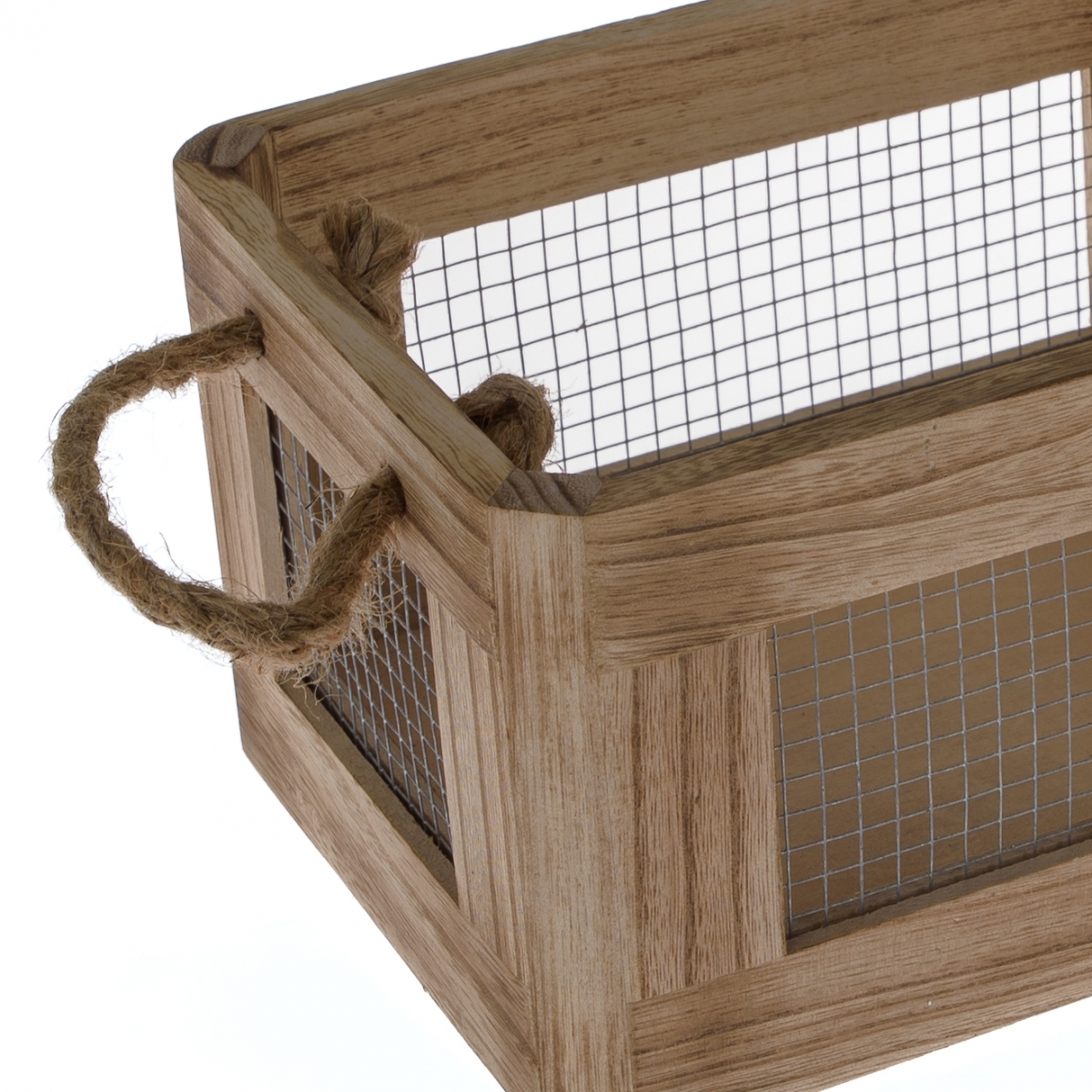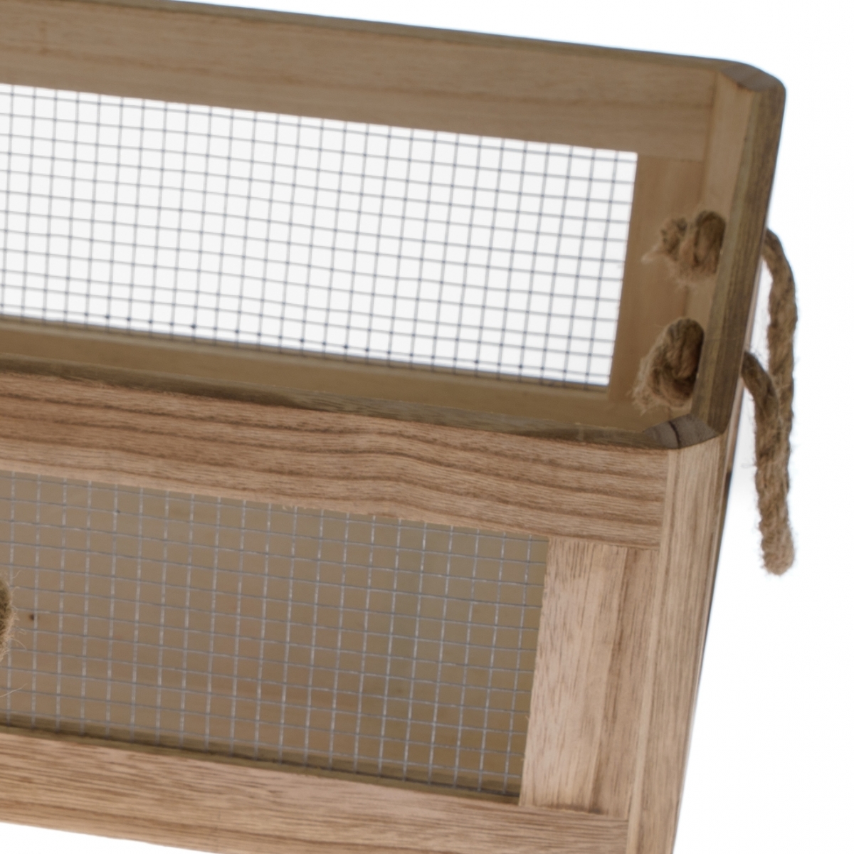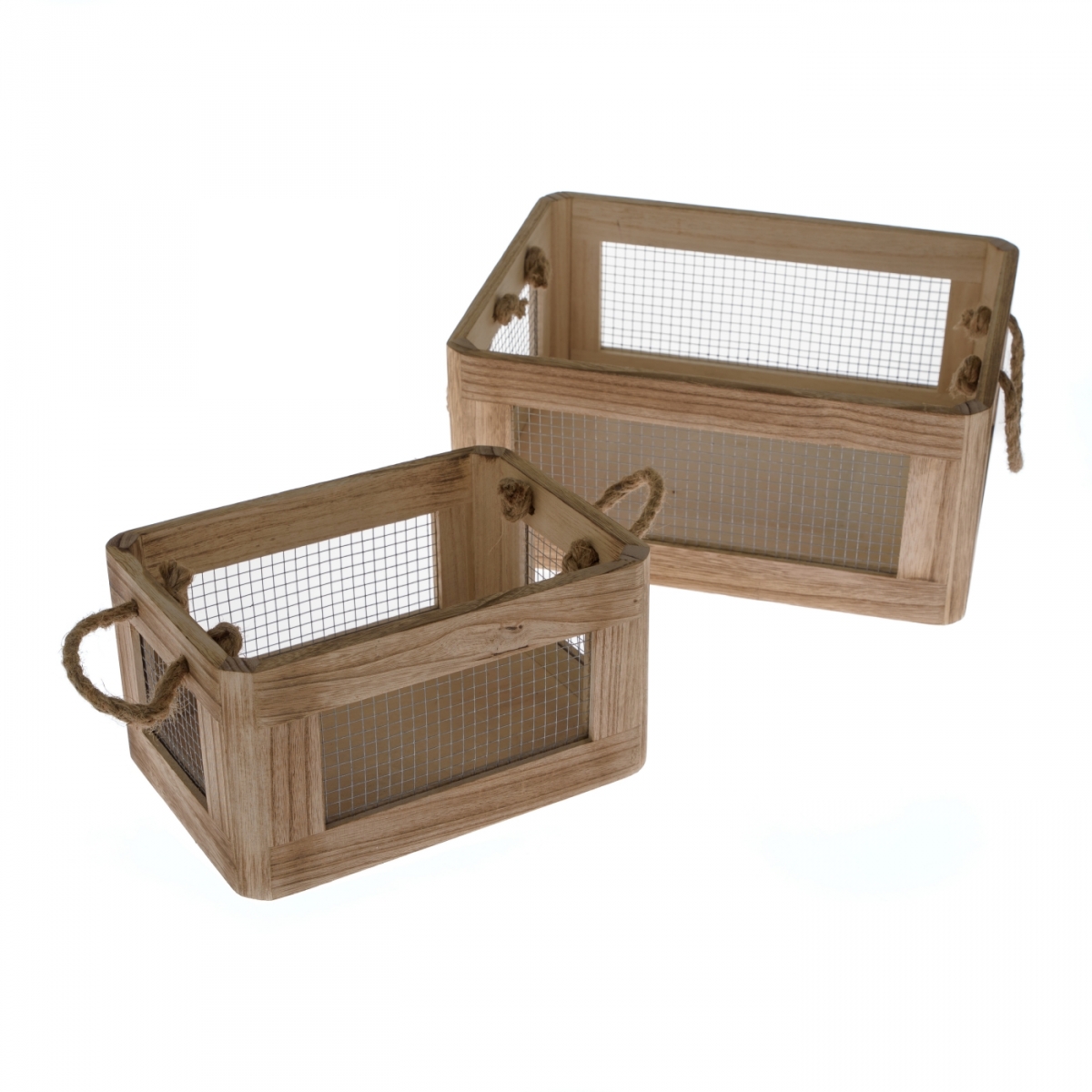 Drevená debnička set 2 kusov vybavená pletivom. Drevené debničky môžete využívať na bylinky, pečivo, aj ako odkladací priestor na drobnosti v kuchyni.