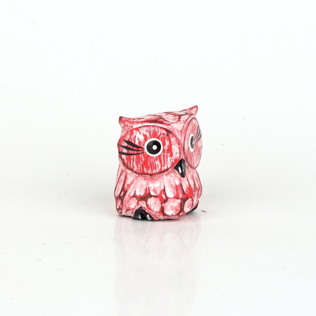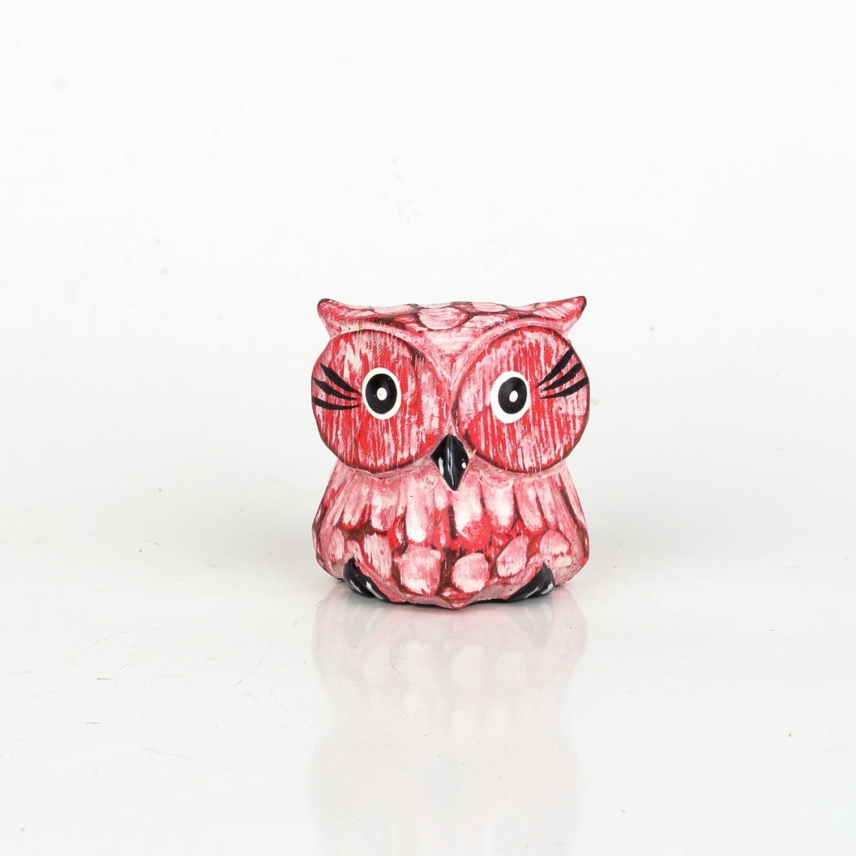 Drevená dekorácia sova v červenej farbe je ručne zdobená a vyrezaná z ľahkého tropického dreva.