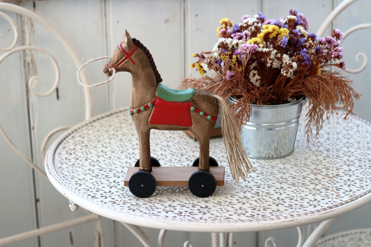 Mali ste v detstve svoju obľúbenú hračku koníka, ktoré ste sa nechceli vzdať? Tieto krásne chvíle vám pomôže pripomenúť táto nádherná drevená dekorácia koník na kolieskach.