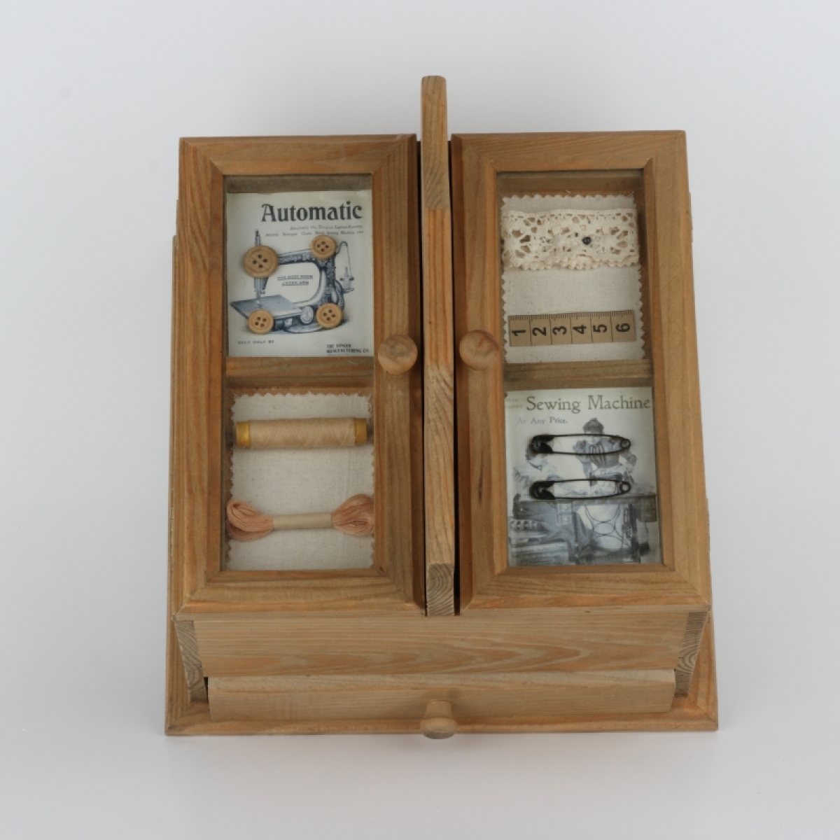 Drevená kazeta na šitie s držadlom veľká