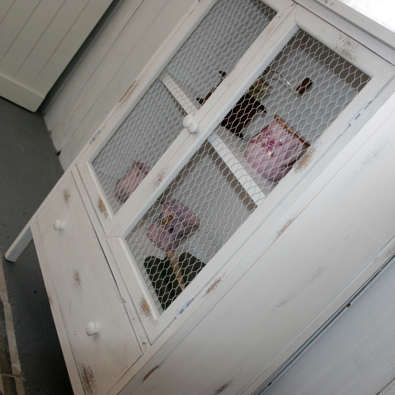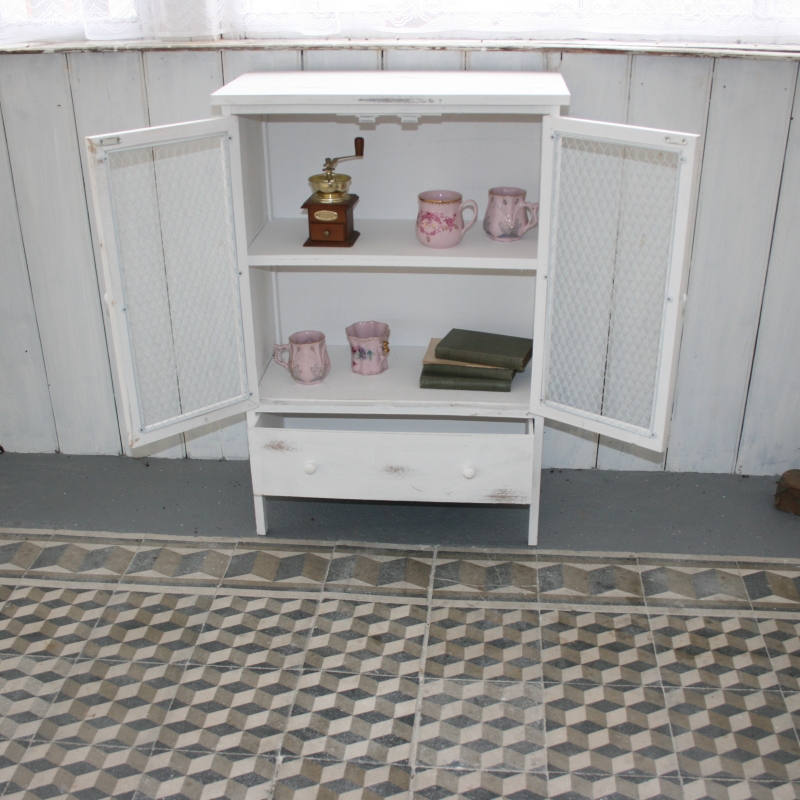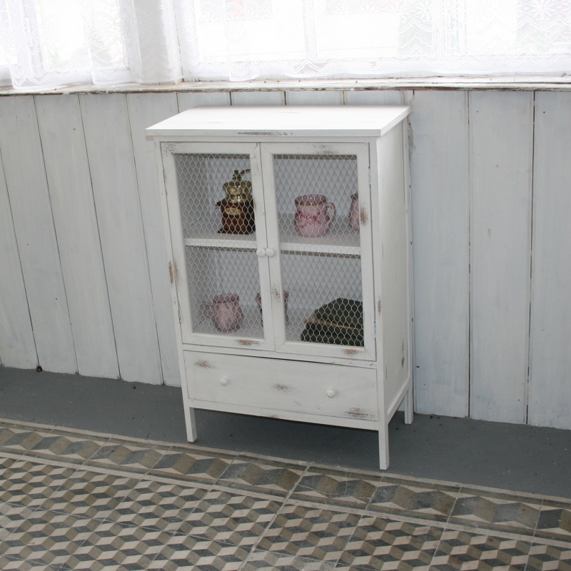 Drevená komoda biela s králičím pletivom 60×89×30cm