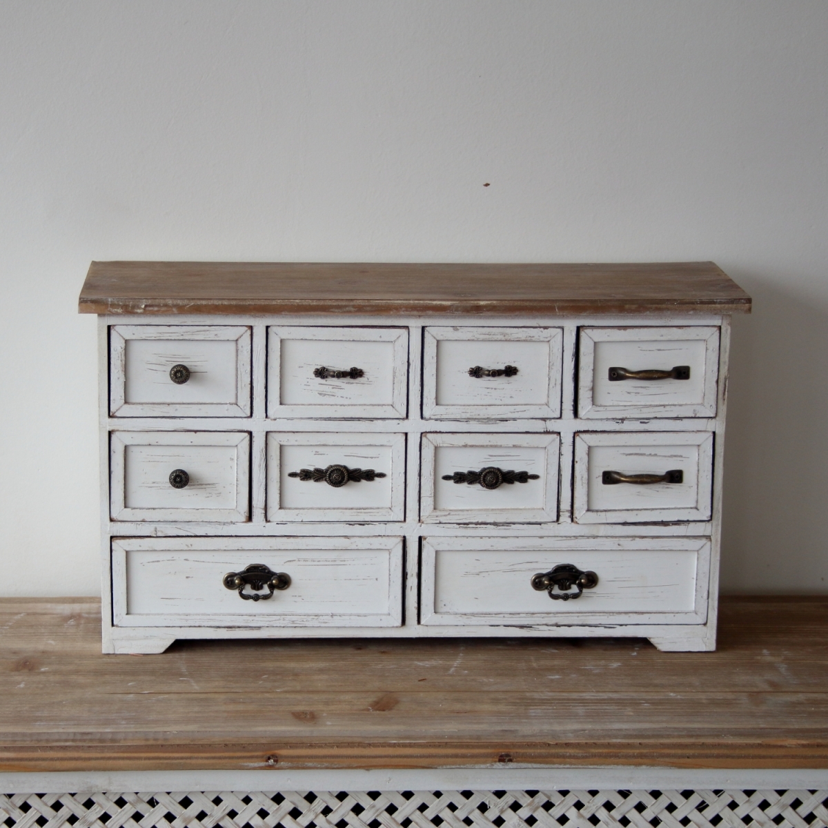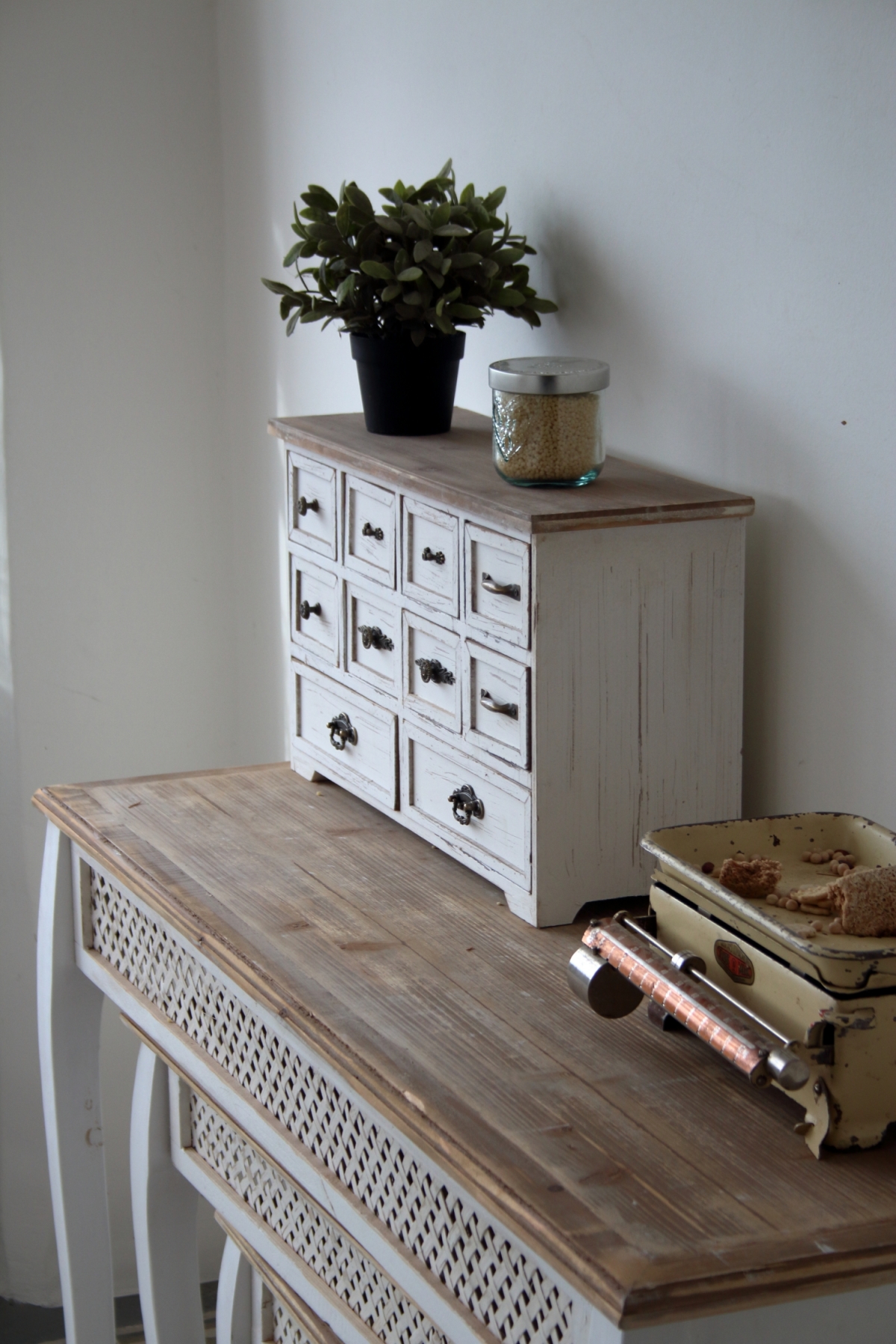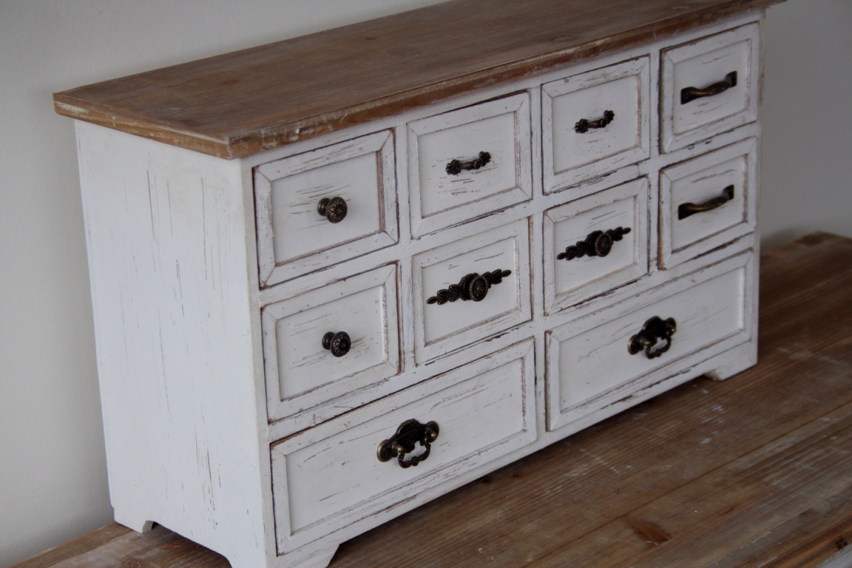 Drevená komoda má 10 šuplíkov, do ktorých môžete dať fotky, šitie, dôležité dokumenty - skrátka všetky potrebné drobnosti. Bude sa skvele vynímať napríklad v obývacej izbe, predsieni alebo spálňu.