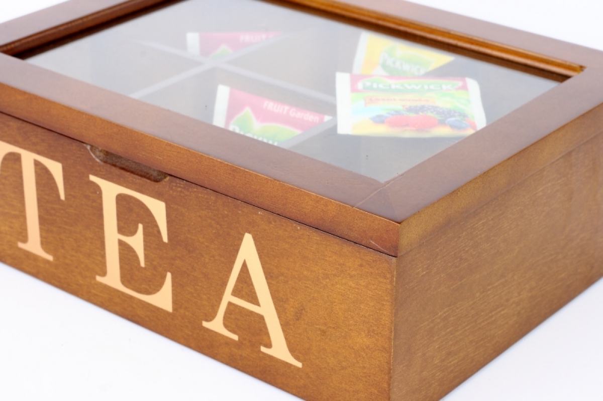 Drevená krabička na čaj TEA 25x17x9cm má šesť priehradiek, do ktorých prehľadne uložíte sáčky obľúbených čajov. Krabičky Vám tak nezaberú miesto v skrinke a kuchyne dostane ďalší dekoratívny prvok.