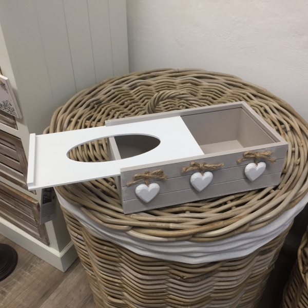 Drevená krabička na vreckovky hnedá 3 srdcia 26x15x8,5cm slúži na ukrytie nevzhľadných papierových krabíc, ktoré zbytočne priťahujú pozornosť očí.