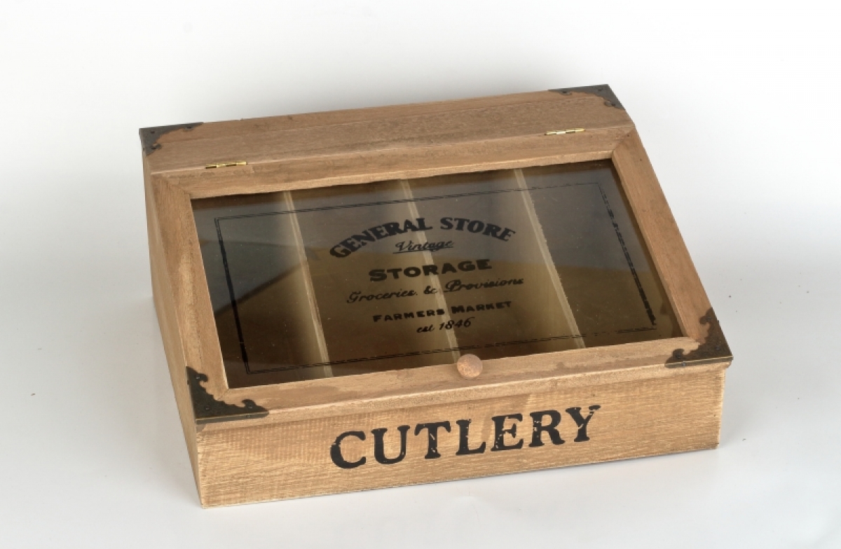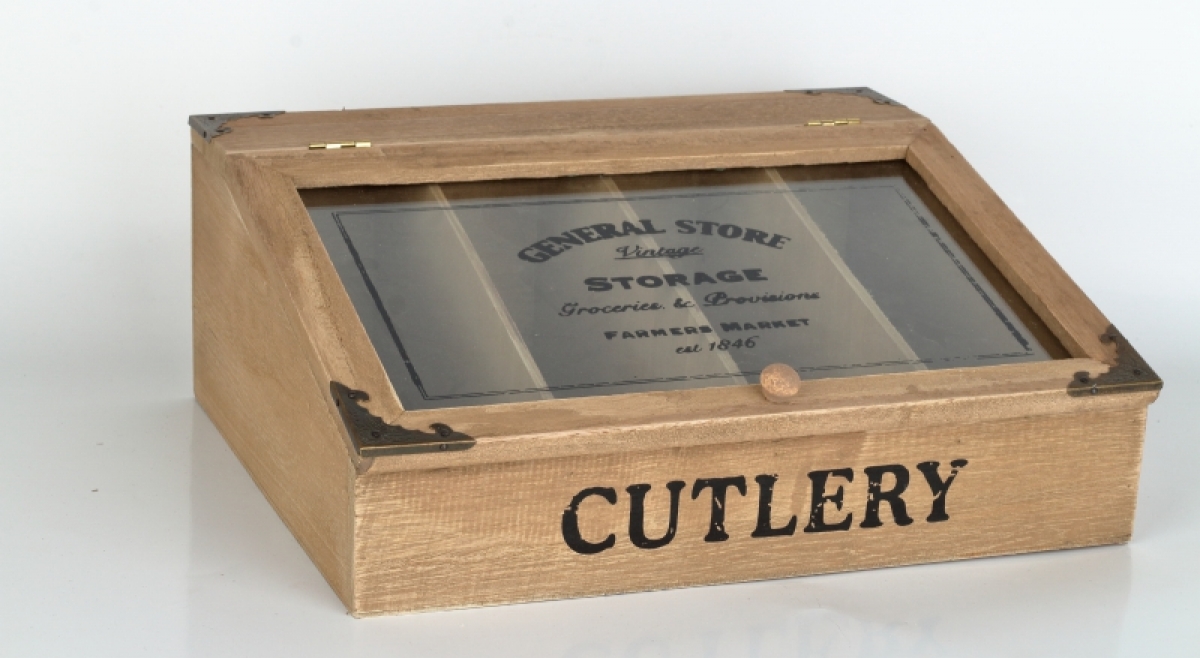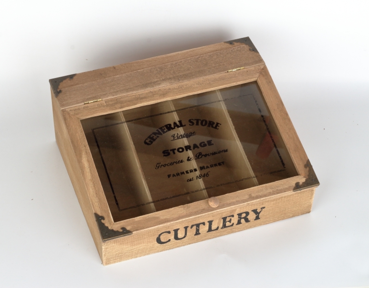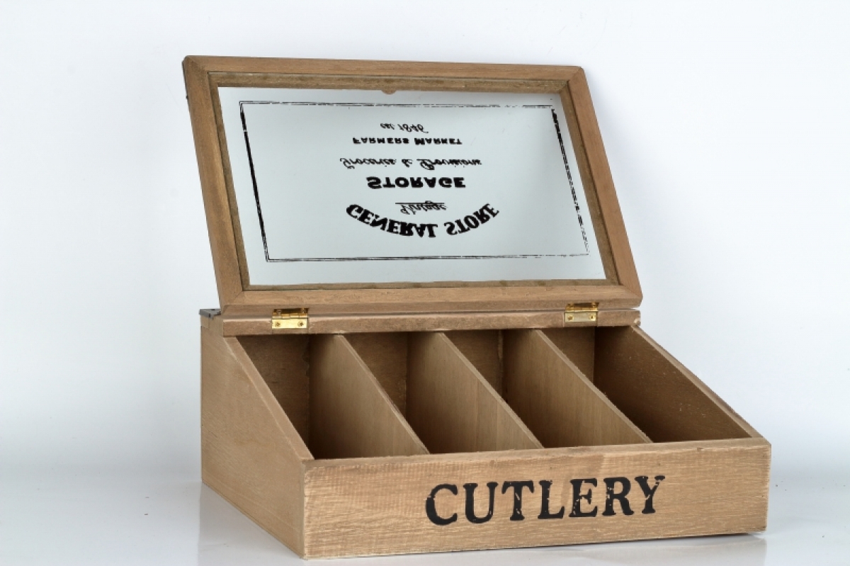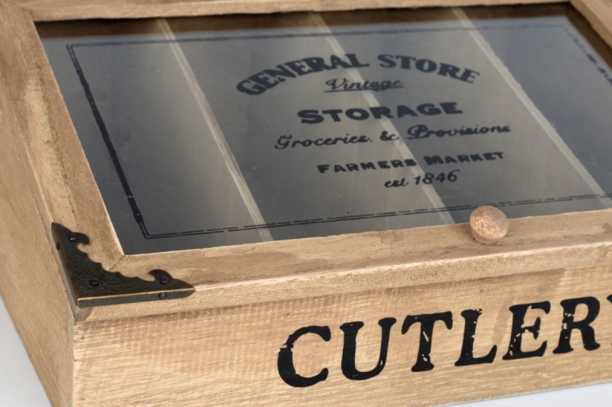 Drevená krabička na príbory v retro štýle.