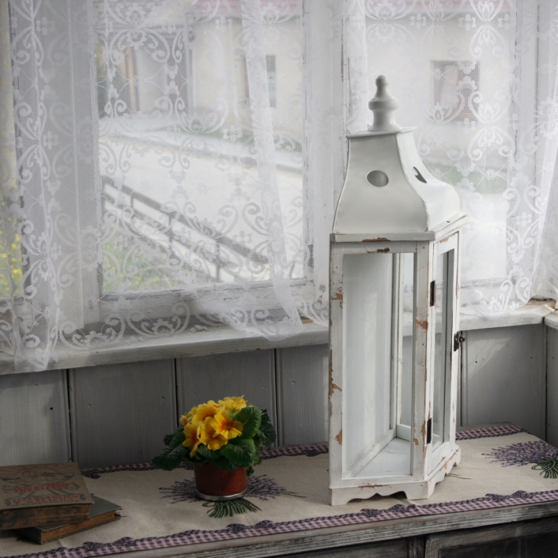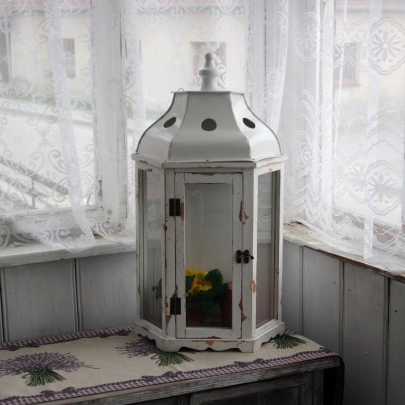 Lucerna má otváracie dvierka. Je možné do nej vložiť buď sviečku, kvetinu alebo ďalšie rôzne drobné dekorácie. Záleží je na Vás.