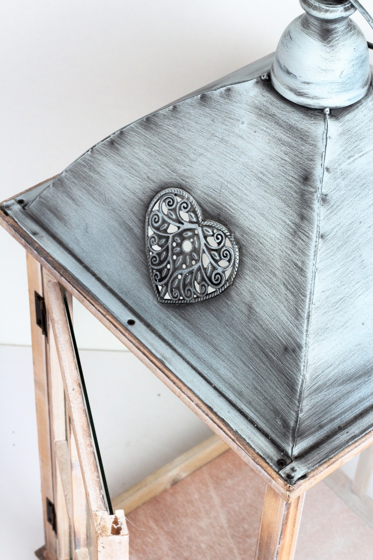 Lucerna má kovovú striešku, presklenné bočné steny a veľké dvierka, ktorými dovnútra ľahko vložíte veľké sviečky.