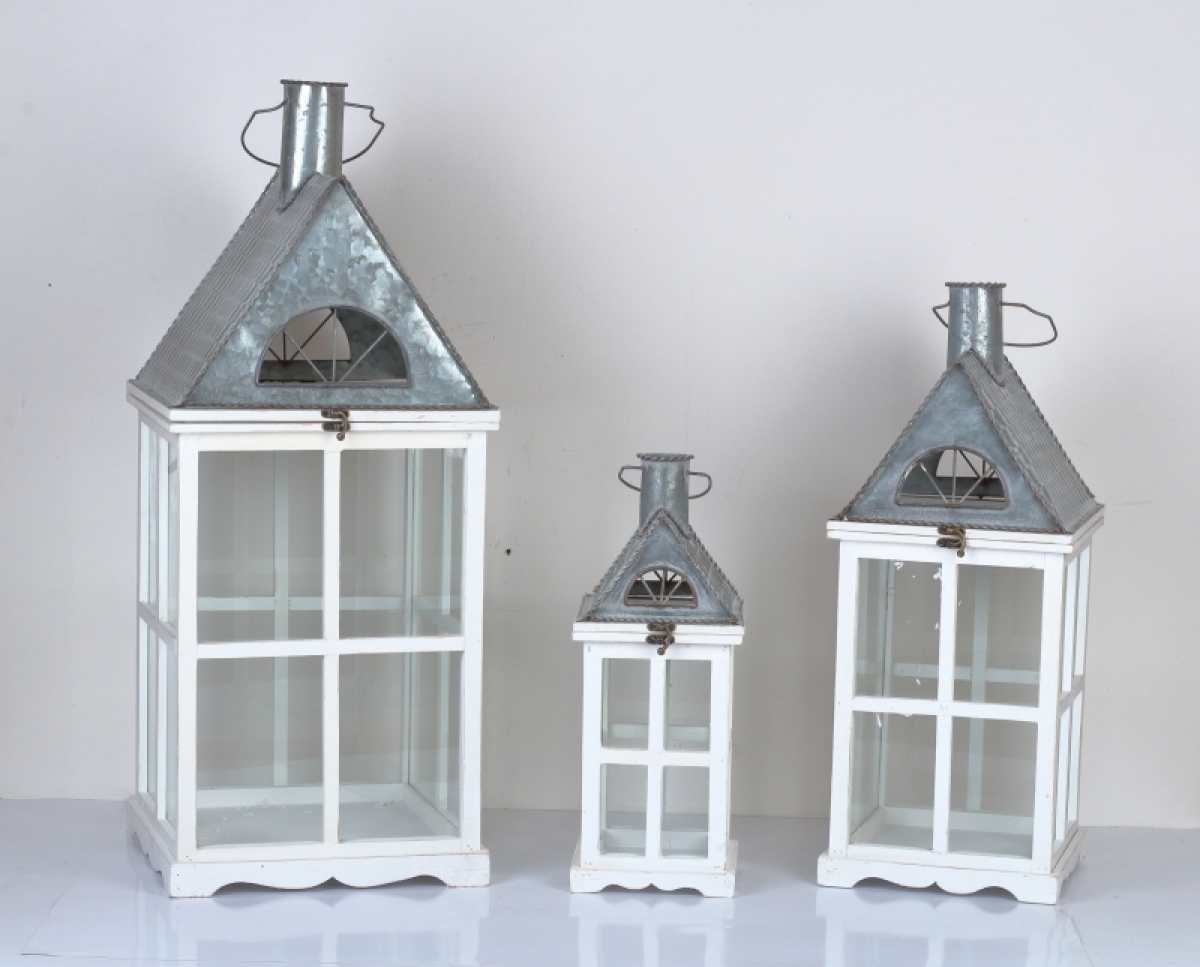 Drevená lucerna biely domček 45cm je elegantný a po zapálení sviečky dodá priestoru príjemné čaro.