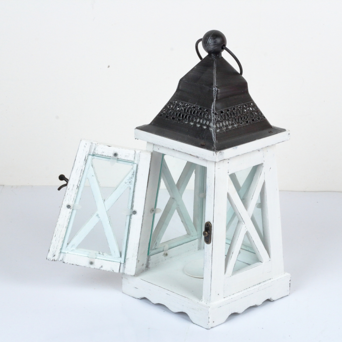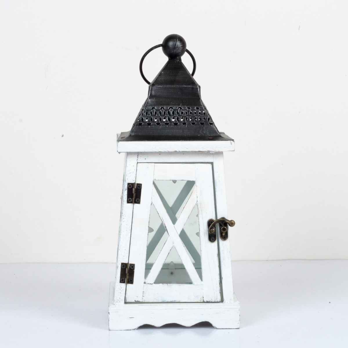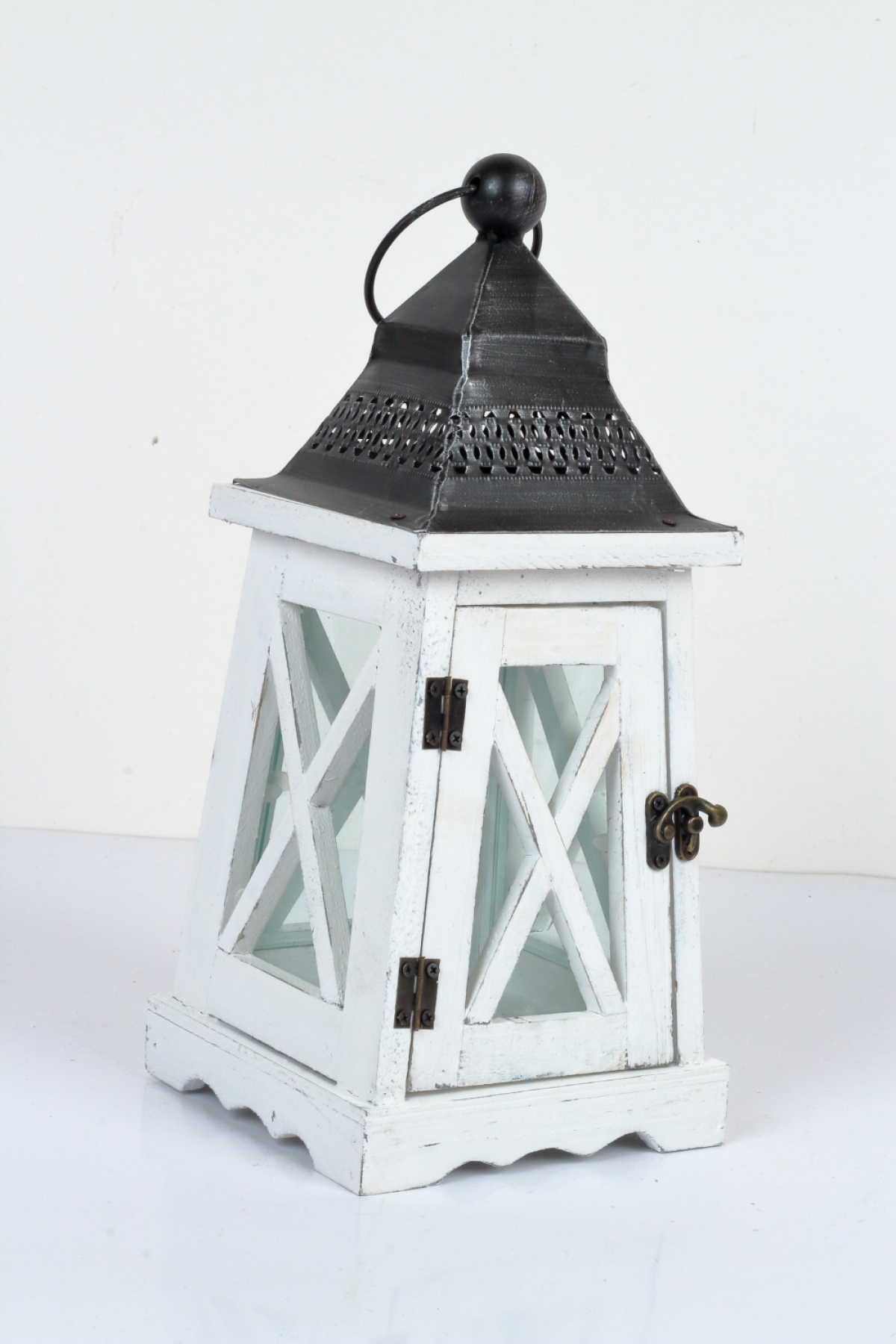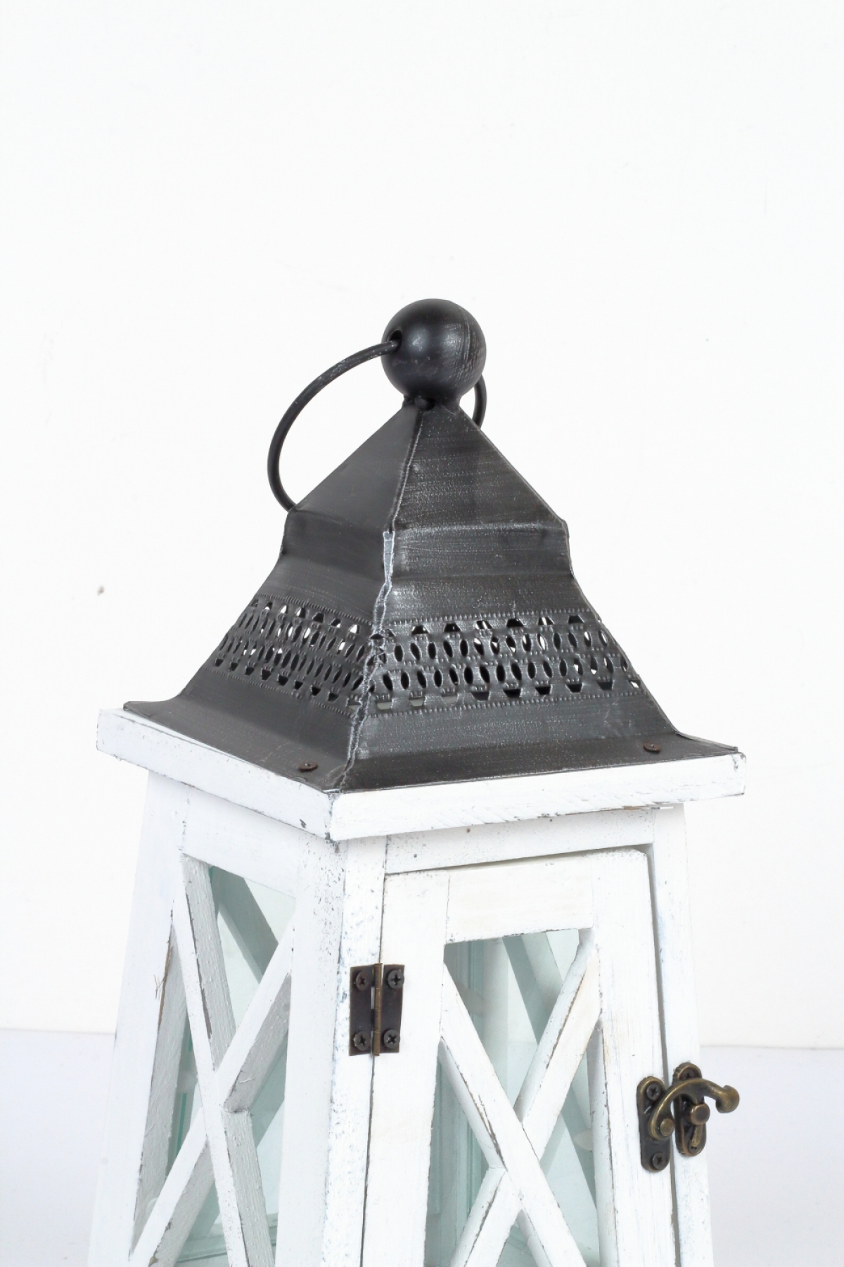 Drevená lucerna kónická biela 37cm zo sady lampášov, ktoré spoločne tvoria dokonalú trojicu, ale zaobídu sa pokojne aj jedna bez druhej.