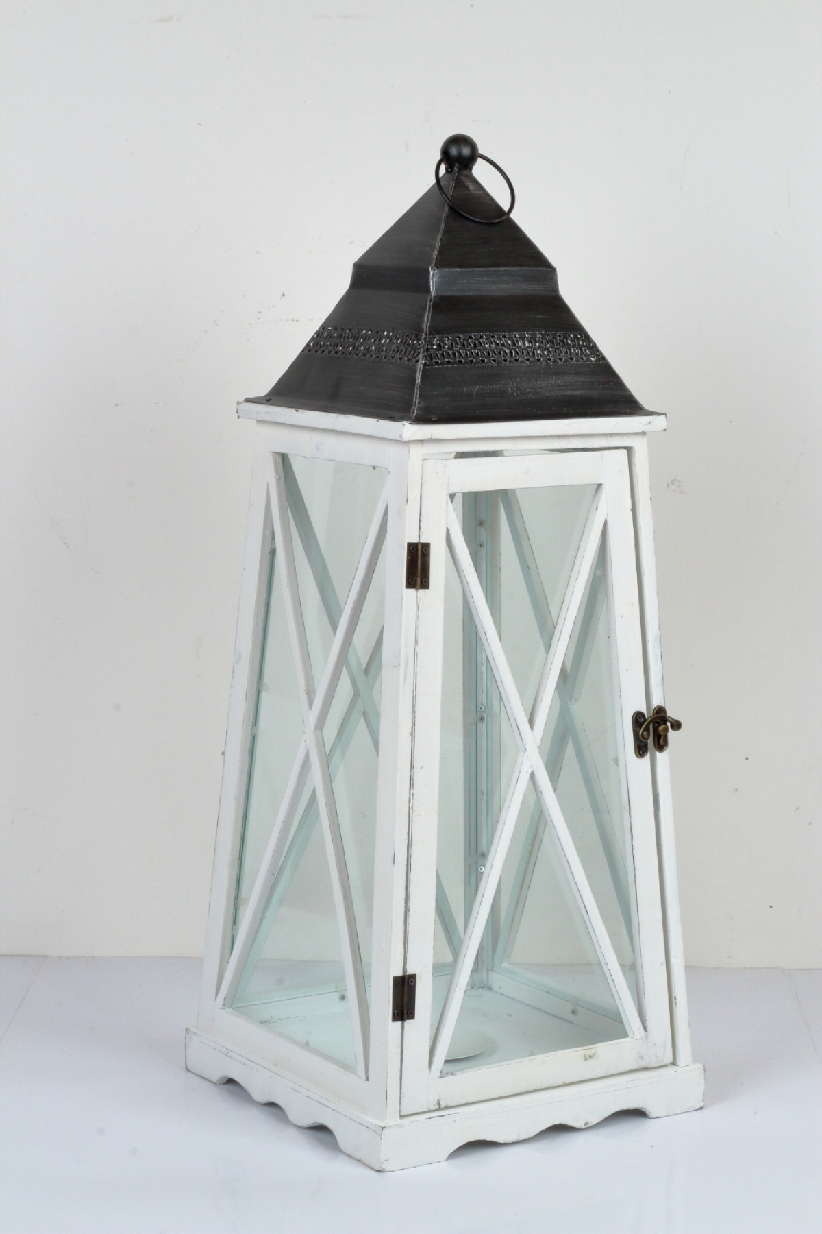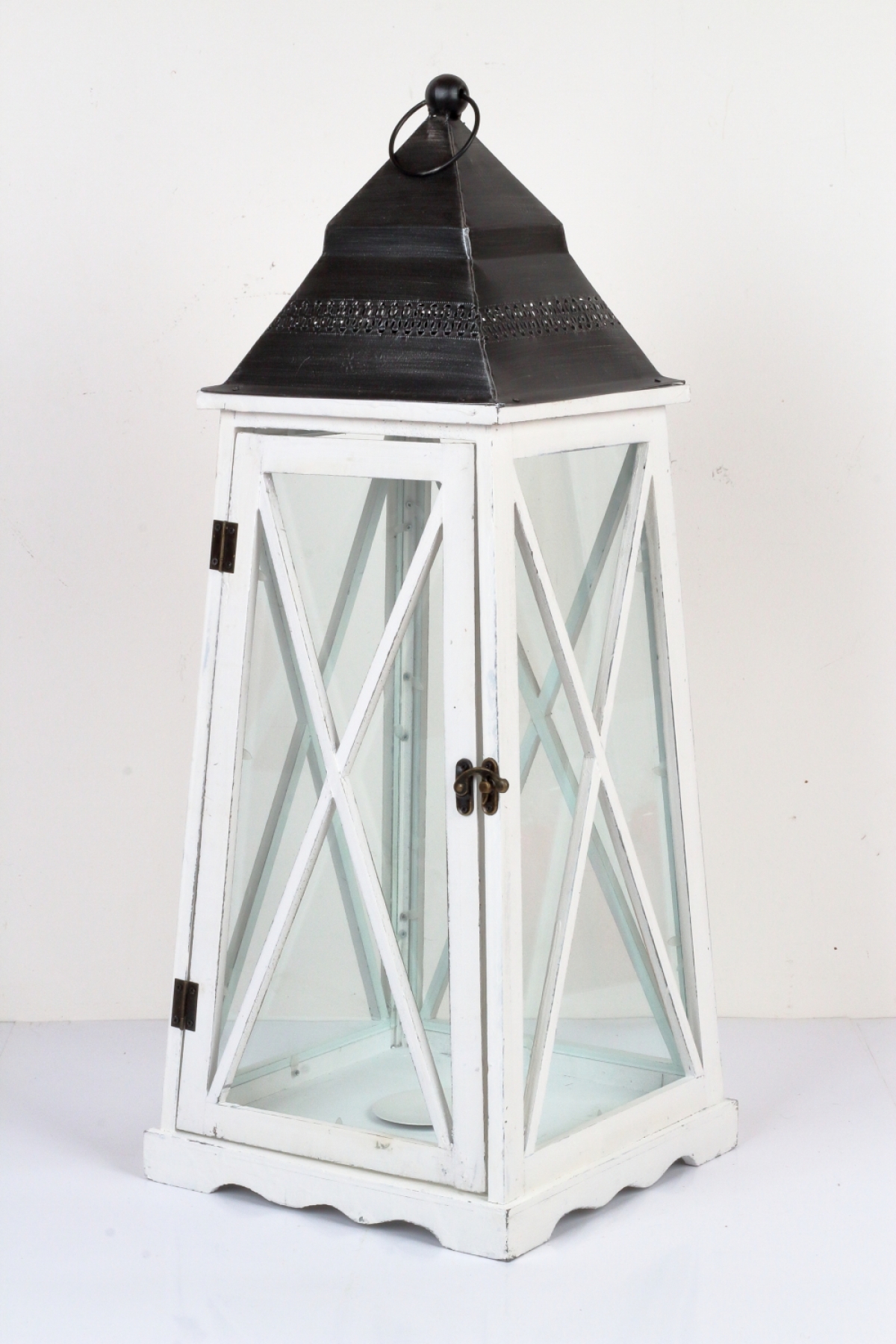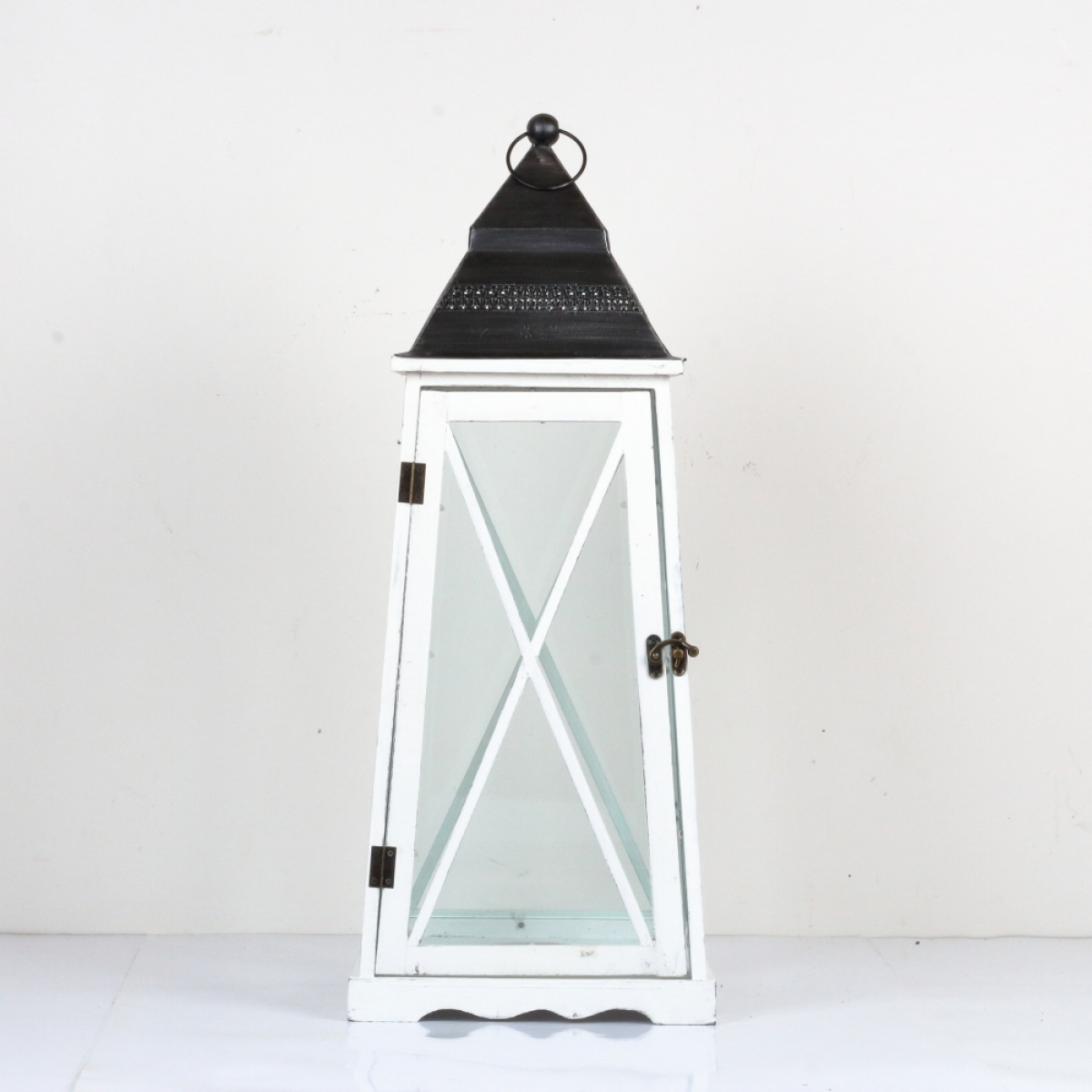 Drevená lucerna kónická biela 77cm