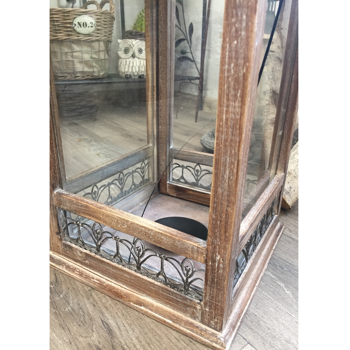 Dřevěná lucerna je vyřazená z důvodu poškození dvou skel.