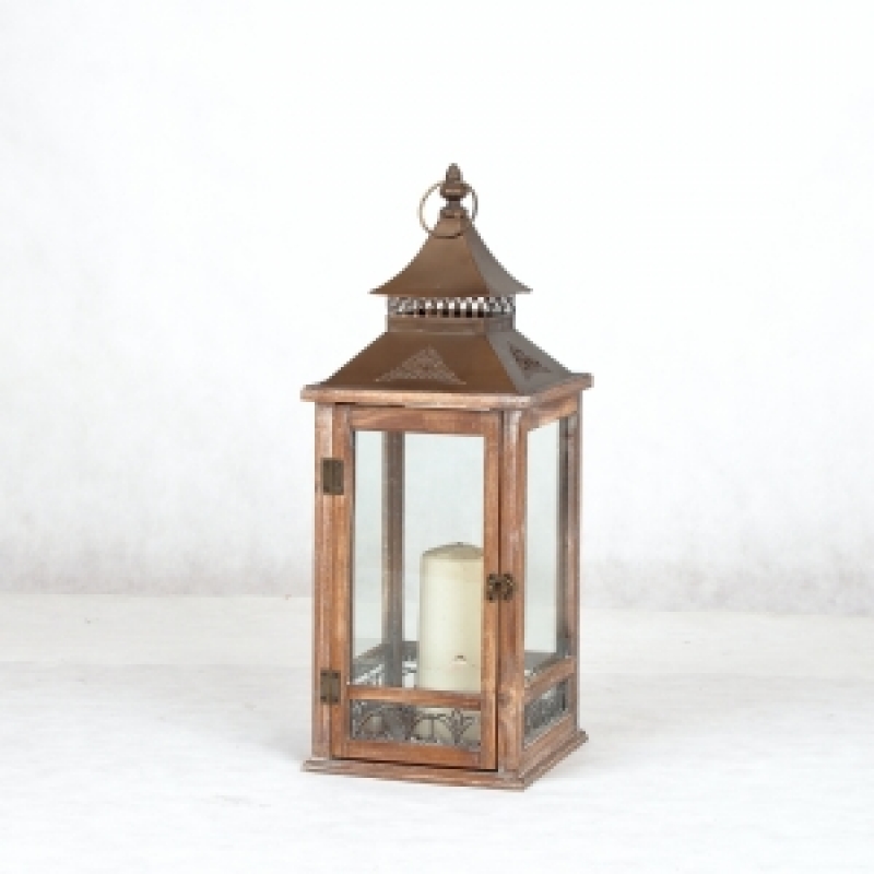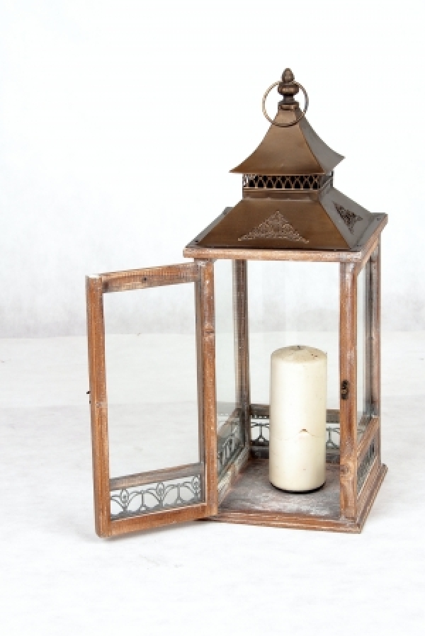 Dřevěná lucerna na svíčku velká 23x23x64cm - vyřazeno