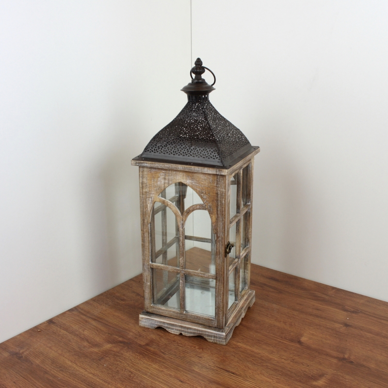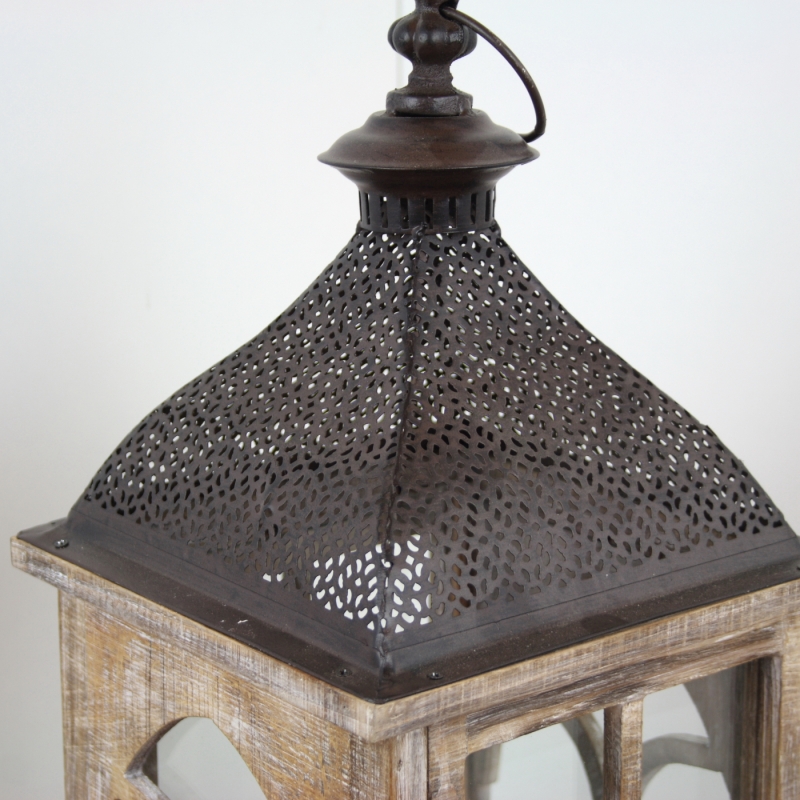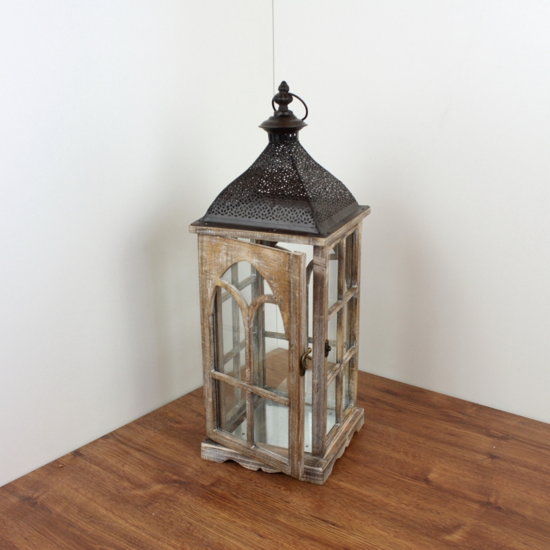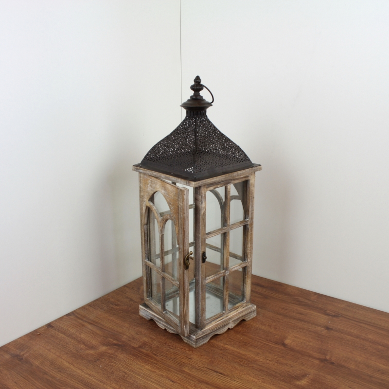 Drevená lucerna s kovovou strieškou 58cm
