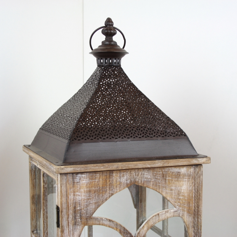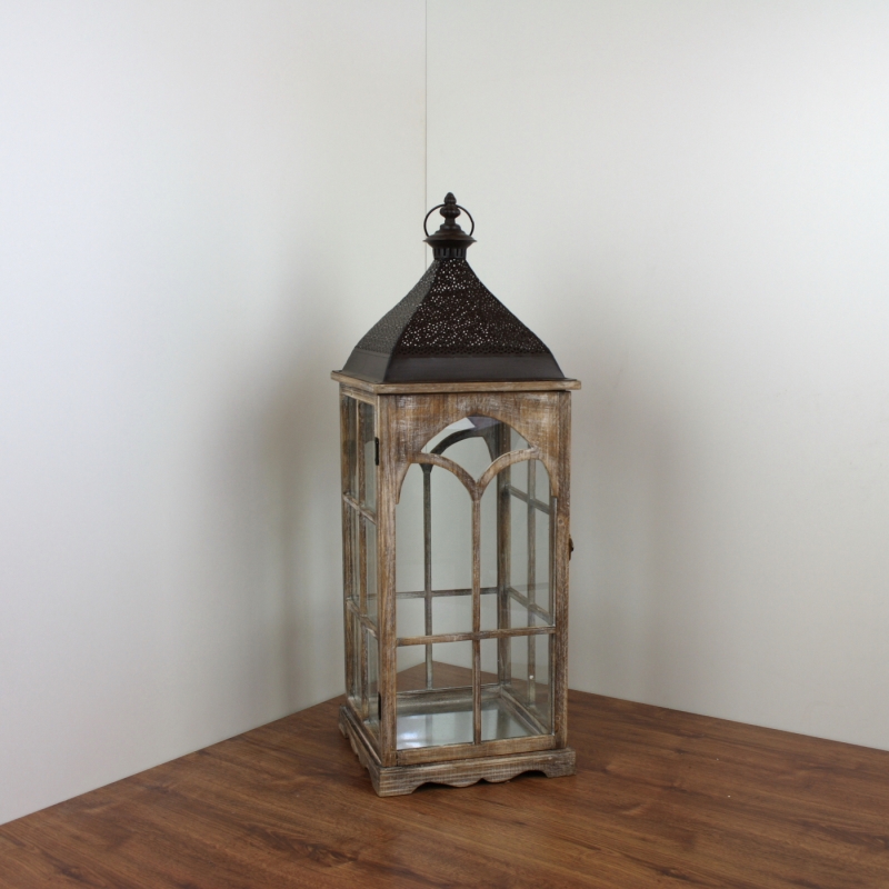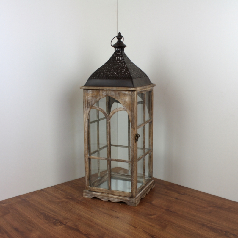 Drevená lucerna s kovovou strieškou veľká bude dominantnou ozdobou obývačky alebo záhrady. Obľúbené romantické lucerny si nájdu cestu k vášmu srdcu aj do vášho domova.