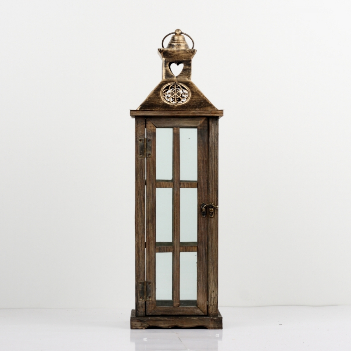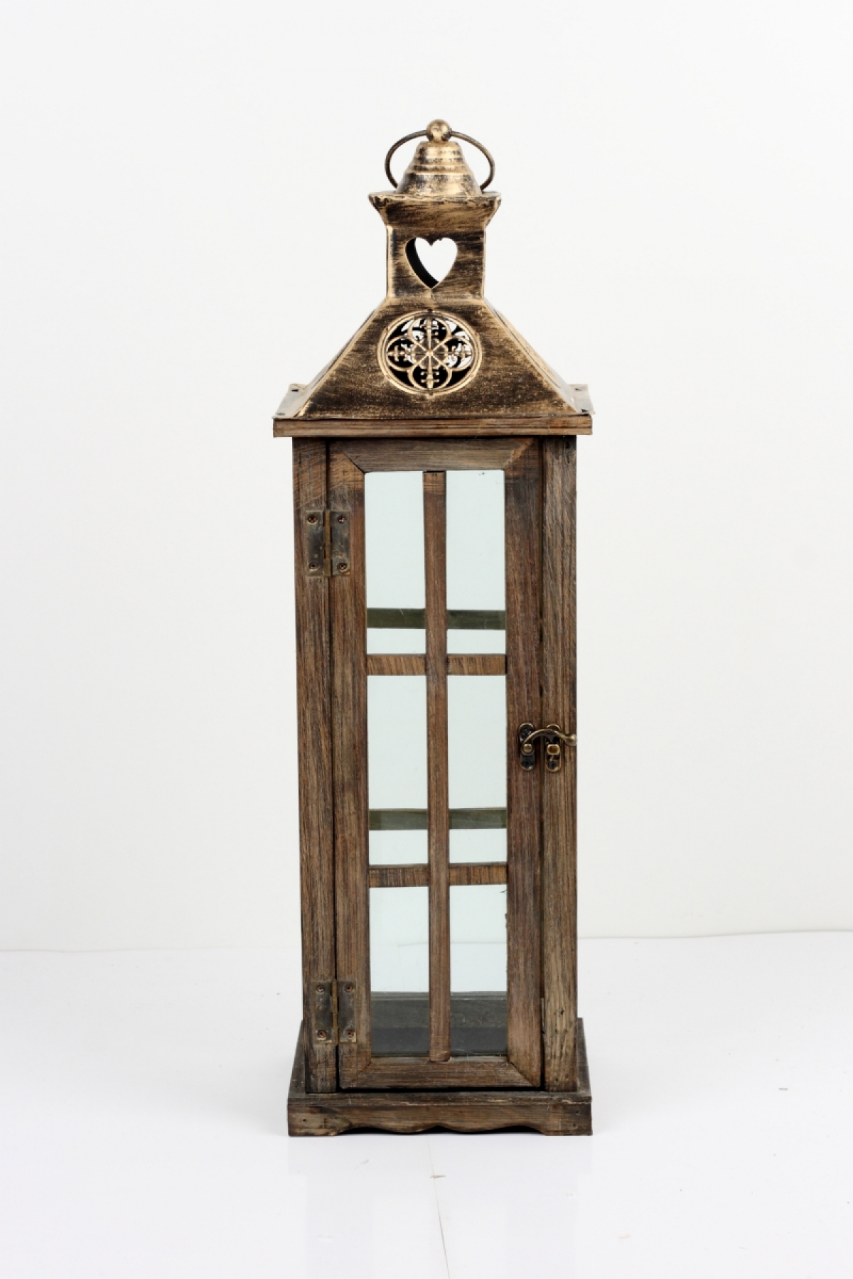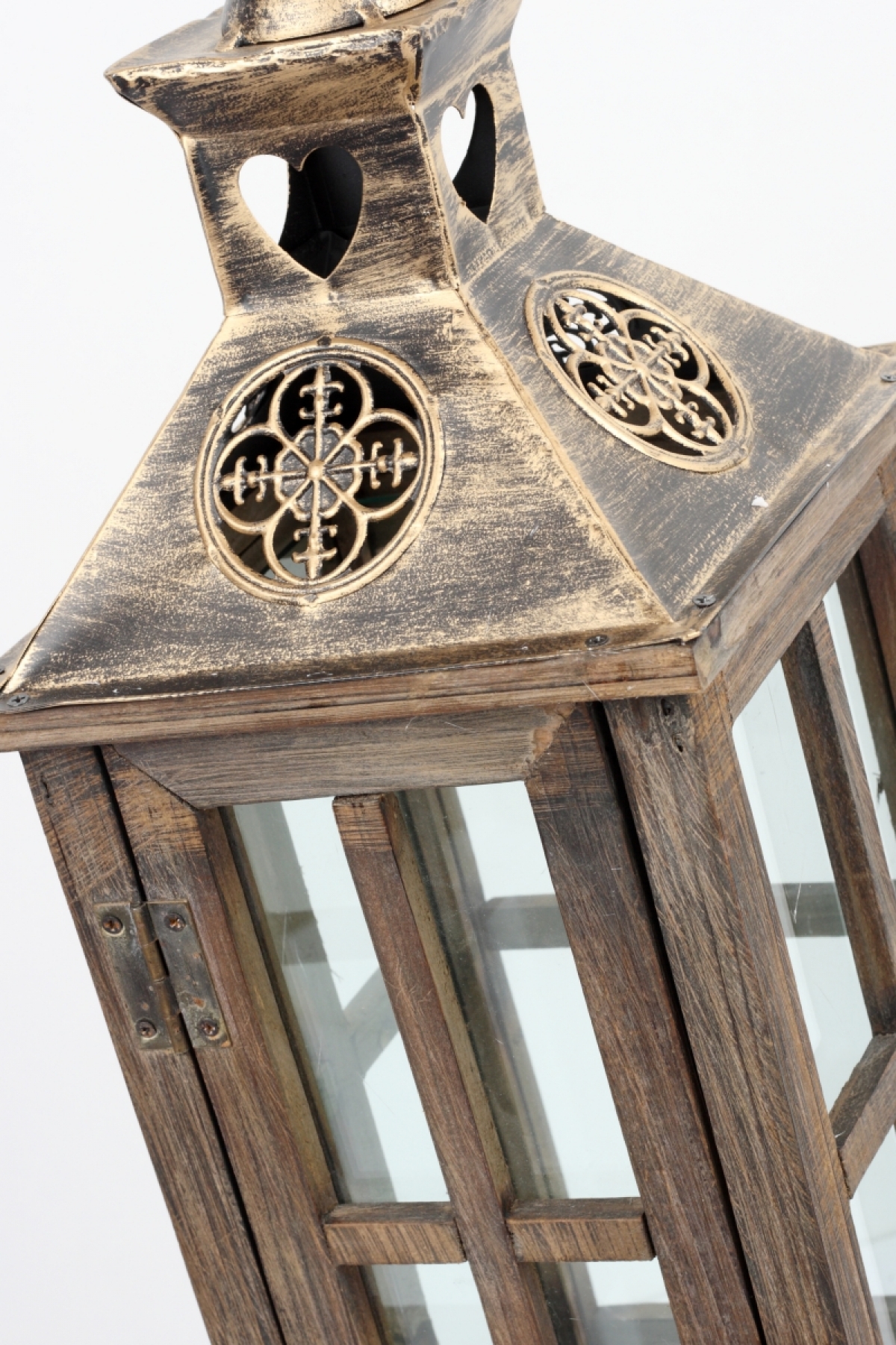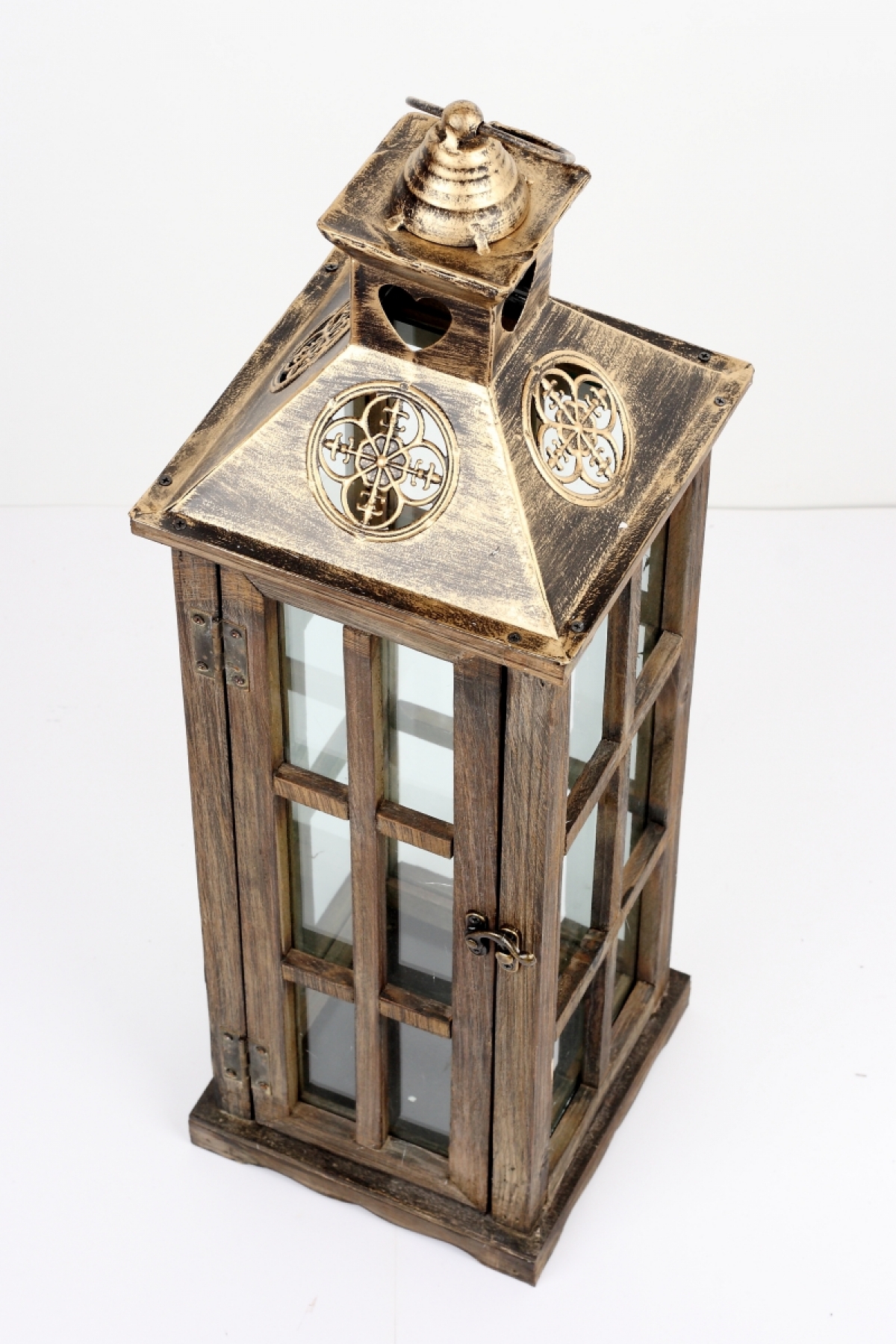 Drevená lucerna s kovovou zlatou strechou 60cm
