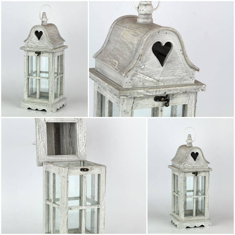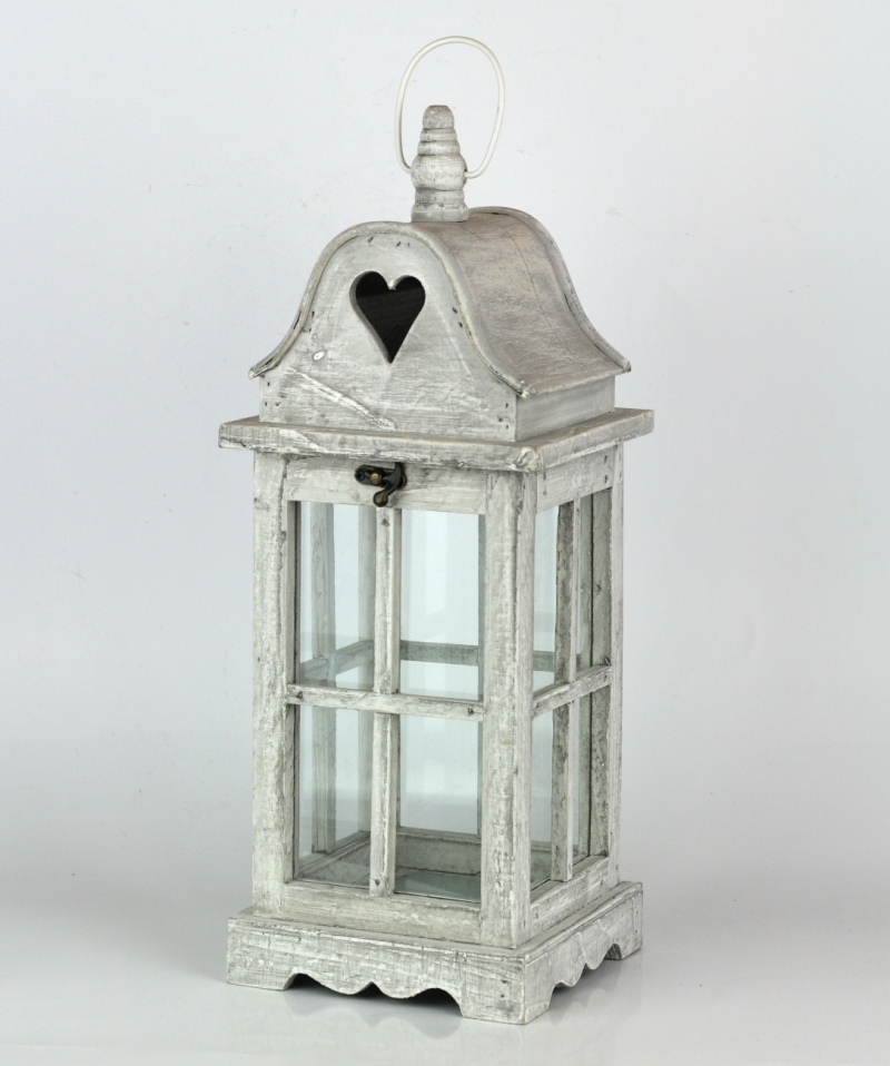 Lucerny sú prekrásnou dekoráciou do domu aj na záhradu. Presklené dvierka zabezpečí, že plamienok nesfoukne vietor. Striešku lucerny zdobí otvor v tvare srdca.