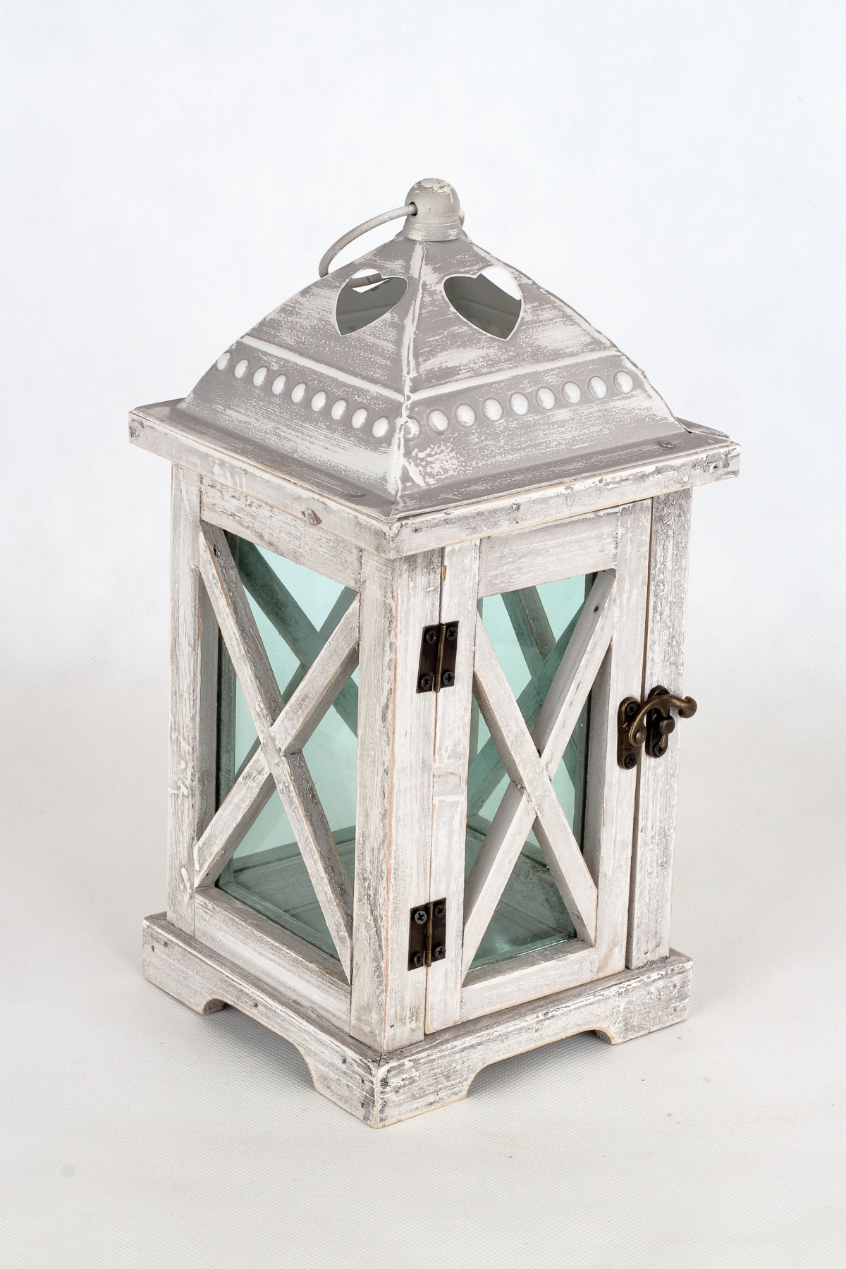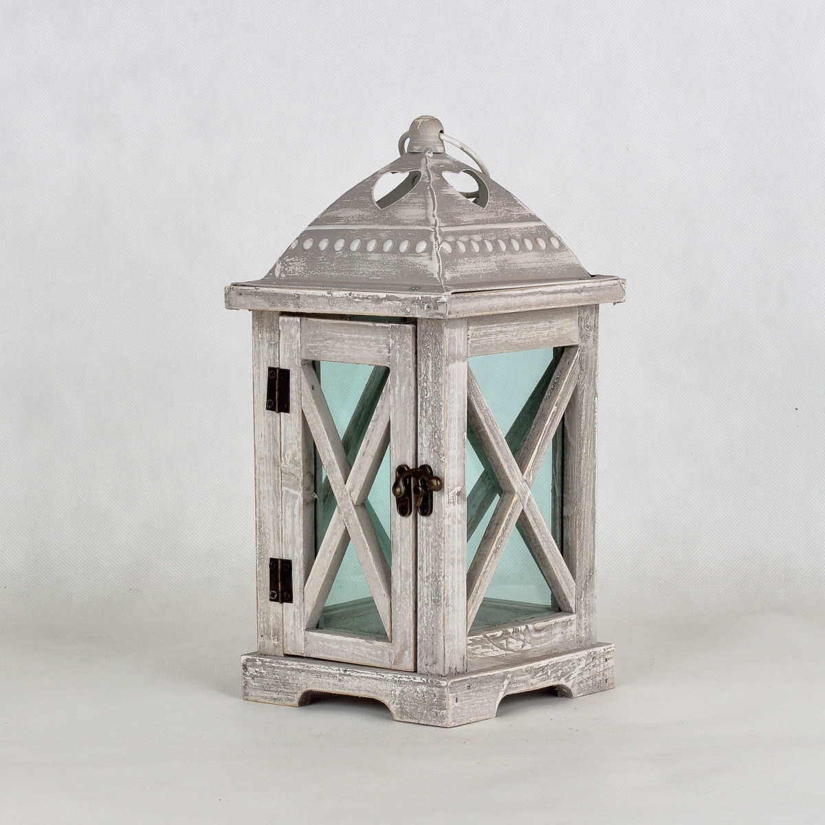 Drevená lucerna šedá 32cm zútulnia interiér i záhradu. Nežnou krásu a svetlo sviečky si môžete užívať každý večer, v lete aj v zime.