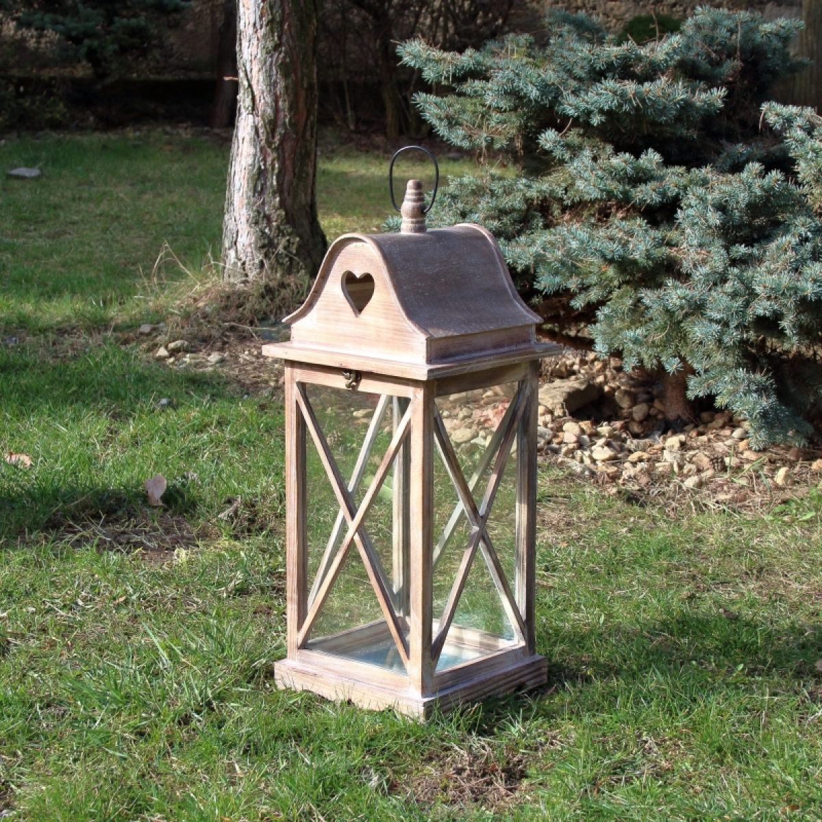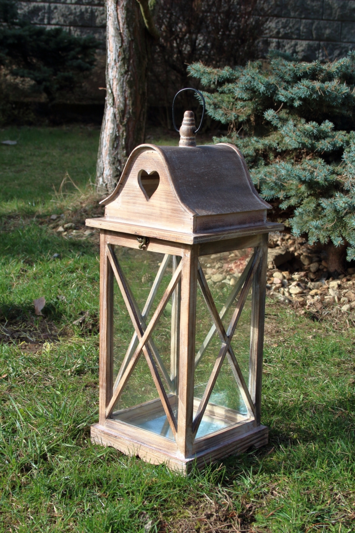 Drevená lucerna s nádhernou vyrezávanou strieškou so srdiečkom bude úžasnou dekoráciou do vášho domu. Zútulnia celý priestor a bude radosť na ňu pozerať. Navyše sa drevená lucerna hodí aj na záhradu či terasu.
