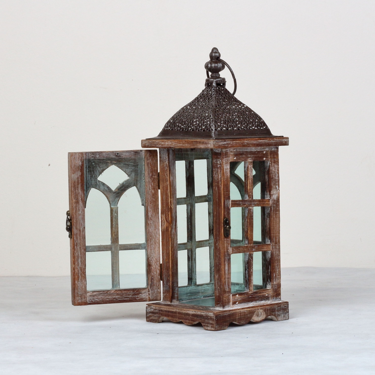 Lucerna má odklápacie bočné dvierka, ľahko tak do nej vložíte veľkú sviečku (môžete použiť aj LED sviečku, ktorú nebudete musieť strážiť). Lucerna je zo sady 3ks, jednotlivé lucerny sú však v ponuke samostatne. Ďalšie dve lucerny majú rozmery 60cm / 79cm.