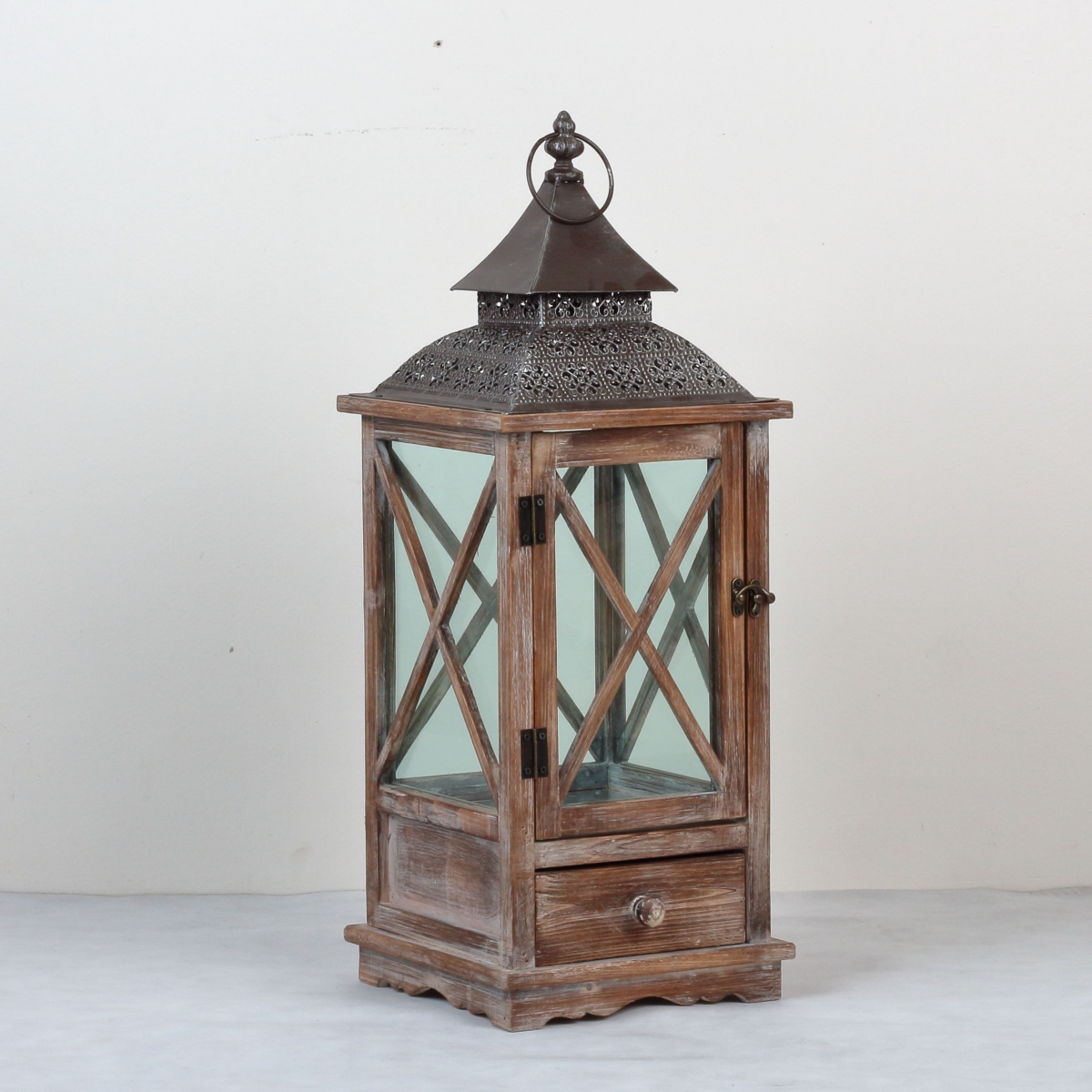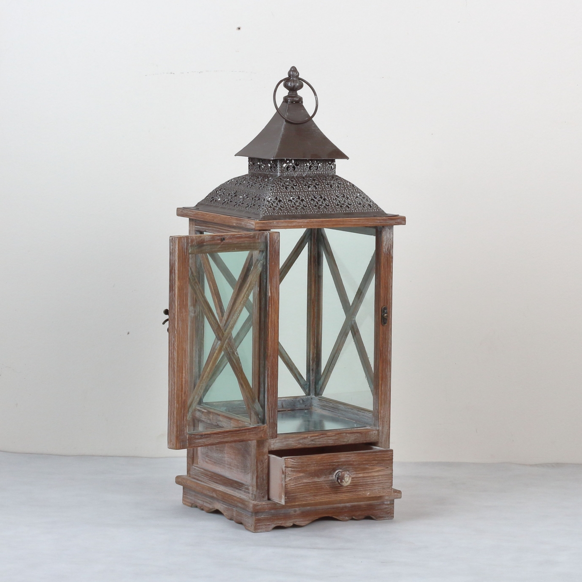 Drevená lucerna tmavá s kovovou strieškou 64cm