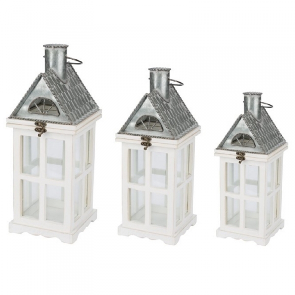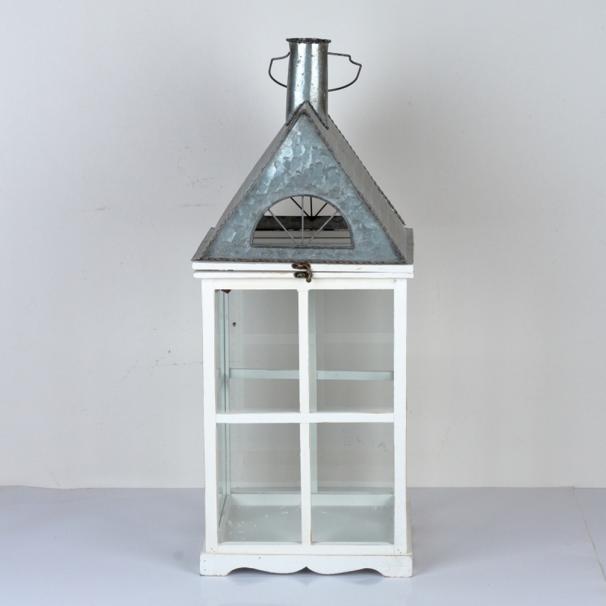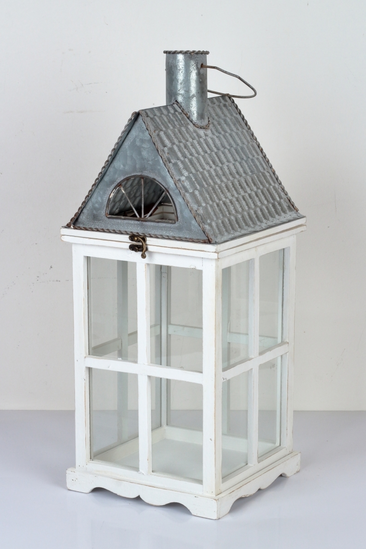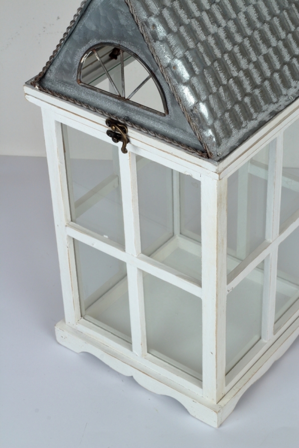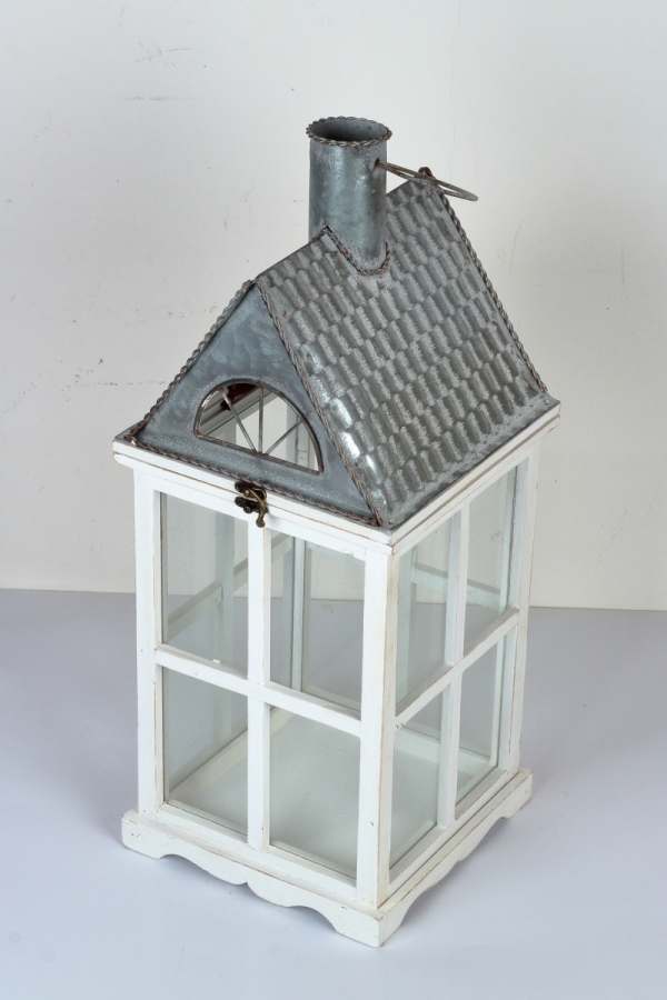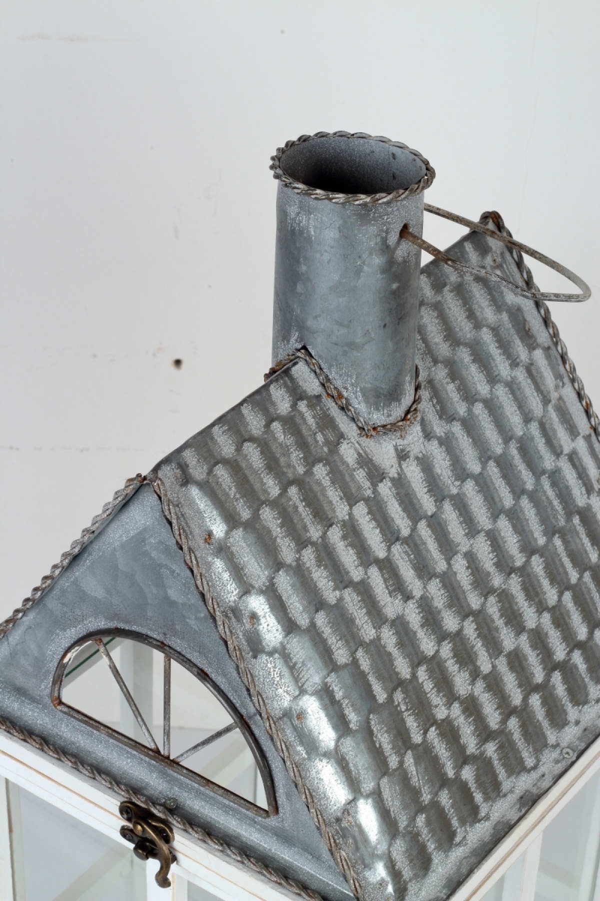 Dřevěná lucerna bílý domeček 63cm je elegantní a po zapálení svíčky dodá prostoru příjemné kouzlo.