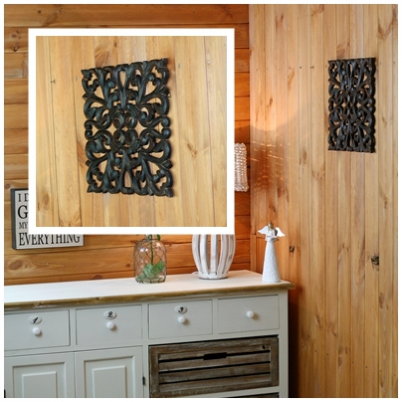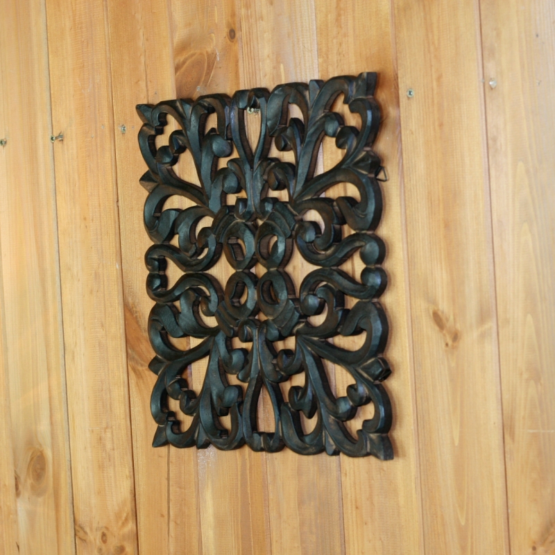 Tento z dreva vyrezávaný ozdobný panel vytvára na stene krásny "netradičné" obrazec. Dekorácia je vyrezaná z tmavého dreva, ktoré je doplnené patinou.