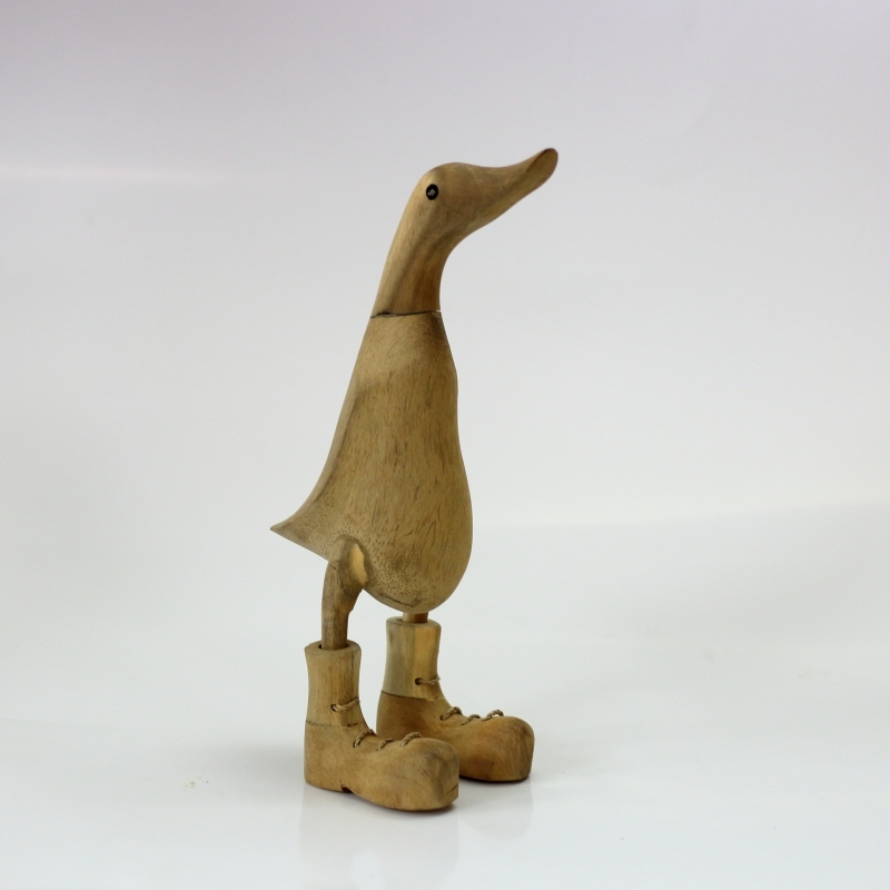 Dřevěná vyřezávaná soška kačk v botách 26cm 220g.