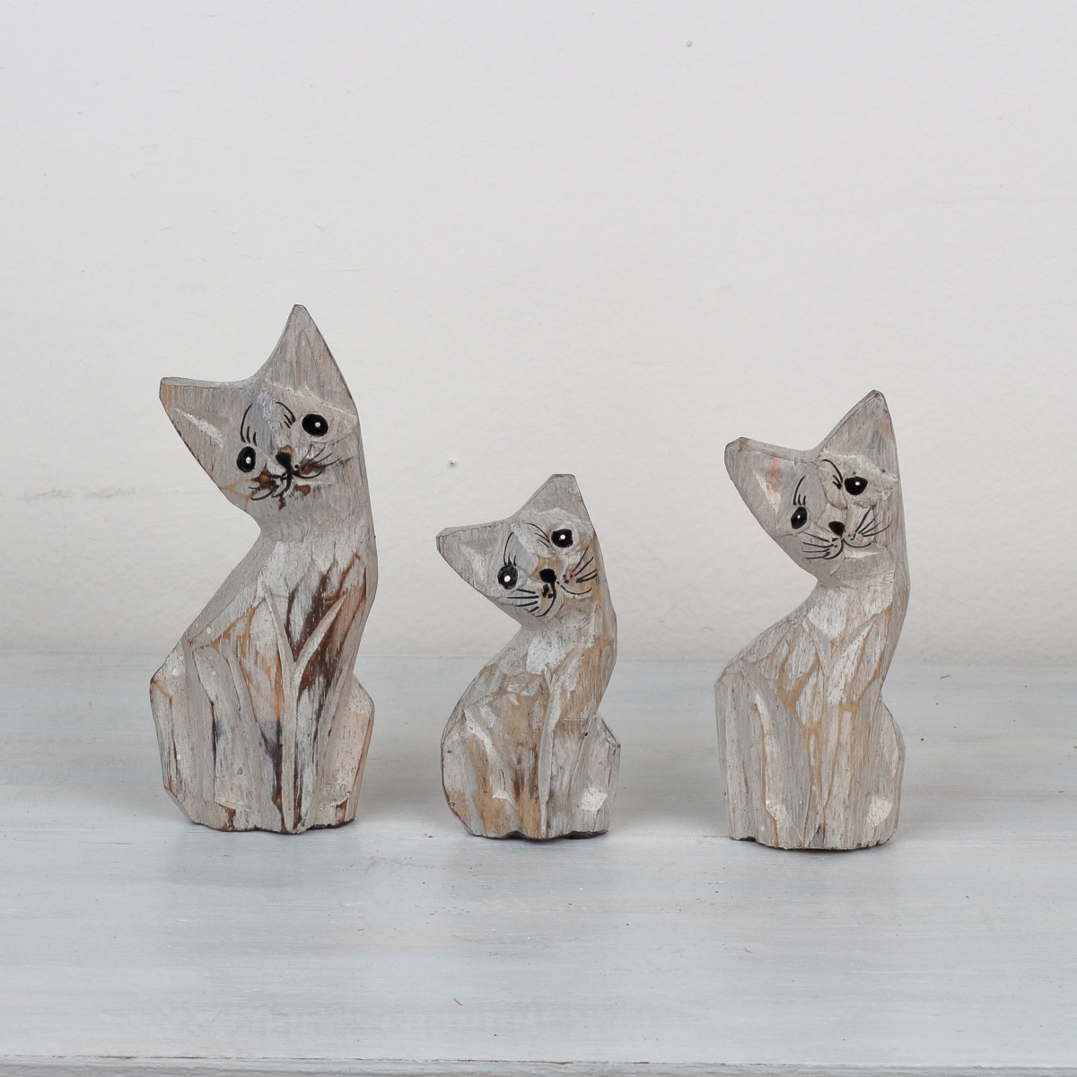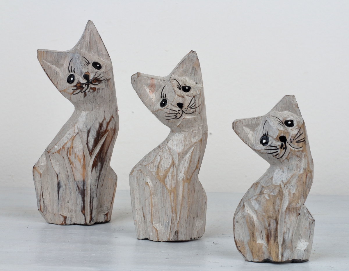 Drevená soška mačka 15/13/10cm (set 3ks) Vám bude robiť tichú spoločnosť a poteší Vaše oko pri každom pohľade. Zabývajte svoj domov drobnými dekoráciami, ktoré robia domov domovom!
