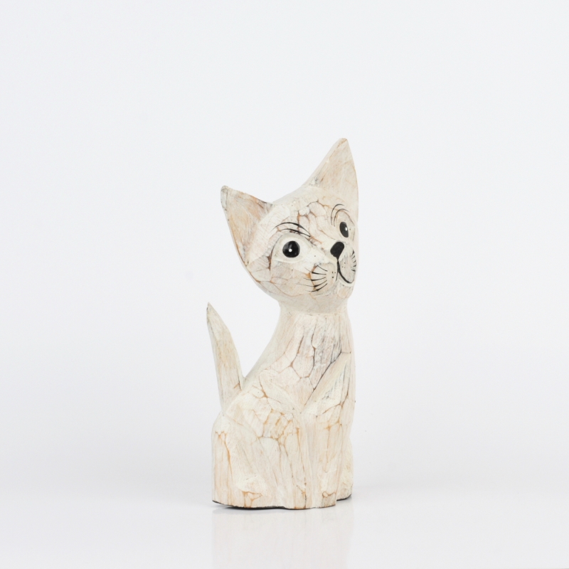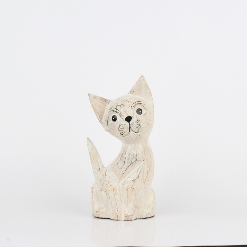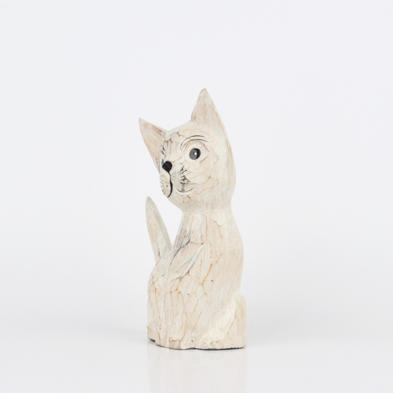 Drevená soška mačka biela 25cm poteší milovníkov roztomilých drobností a ešte viac tých, ktorí milujú mačky.