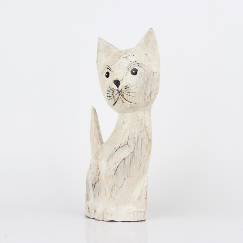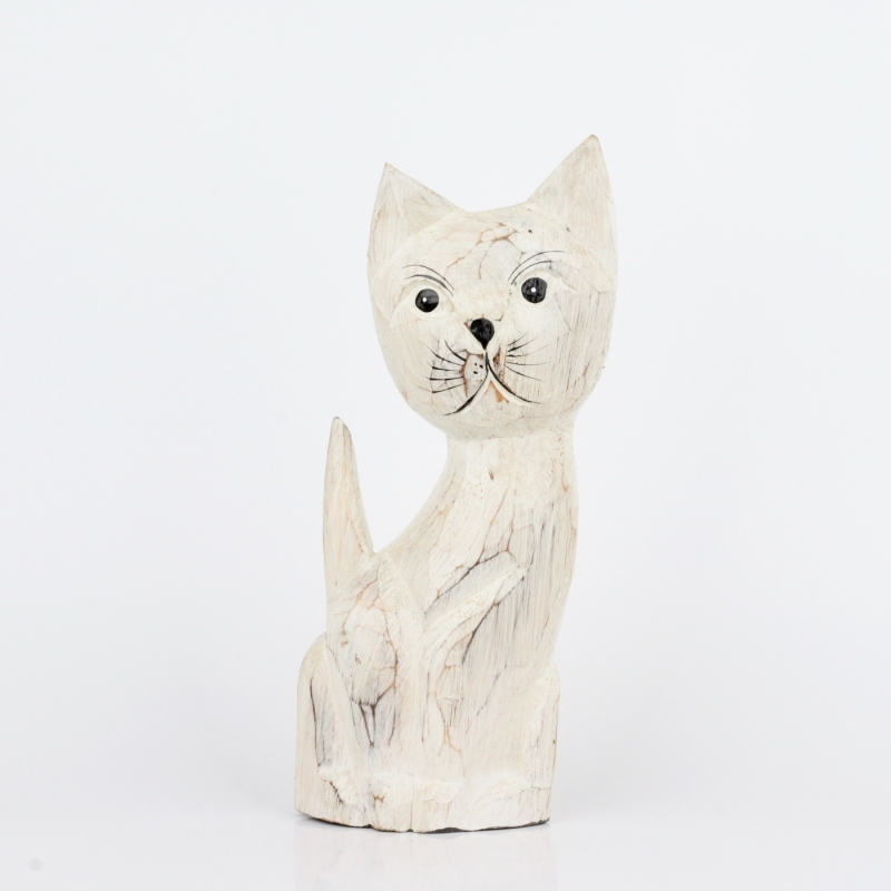 Drevená soška mačka biela 35cm poteší milovníkov roztomilých drobností a ešte viac tých, ktorí milujú mačky.