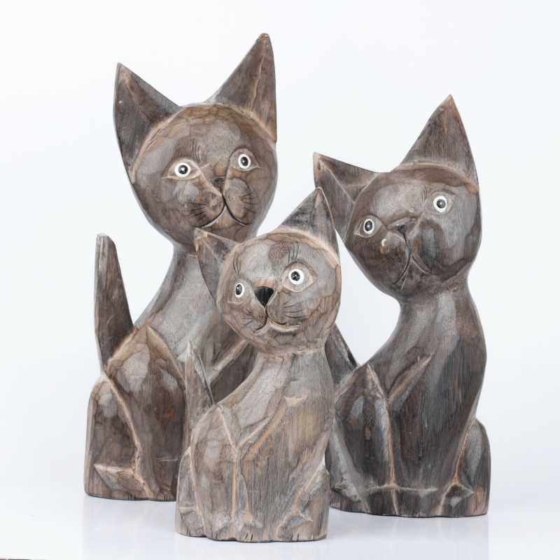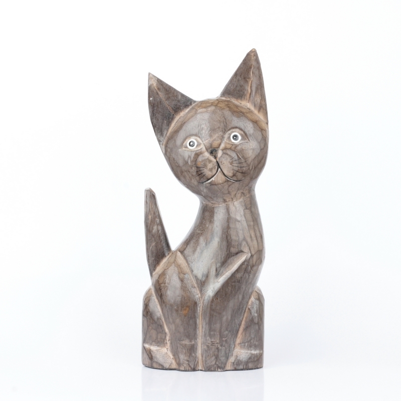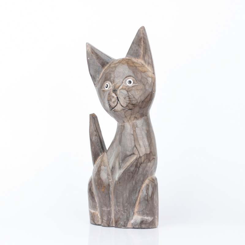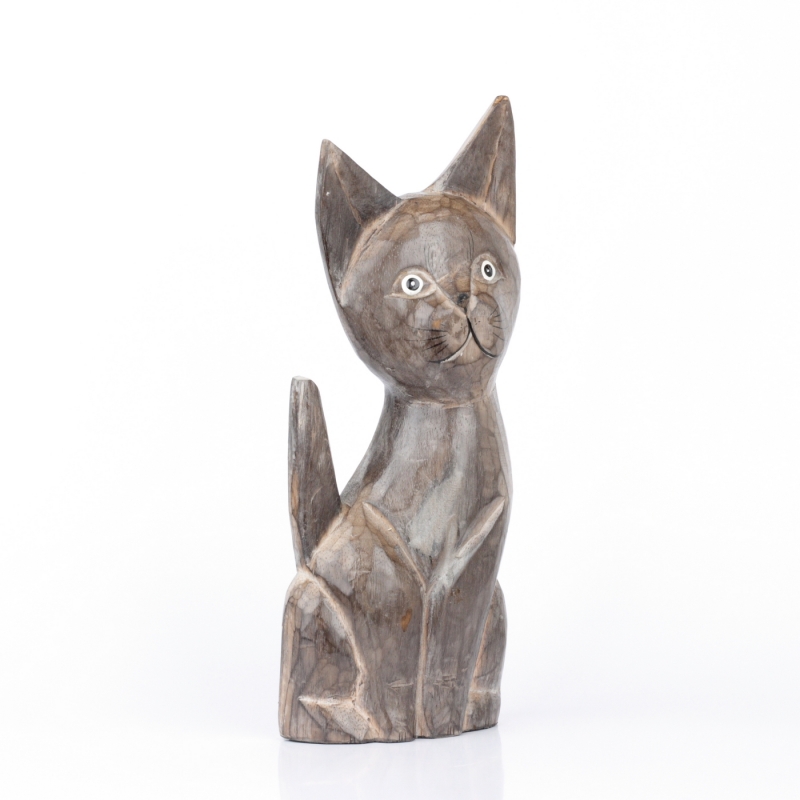 Drevená soška mačka šedá 35cm poteší milovníkov roztomilých drobností a ešte viac tých, ktorí milujú mačky.