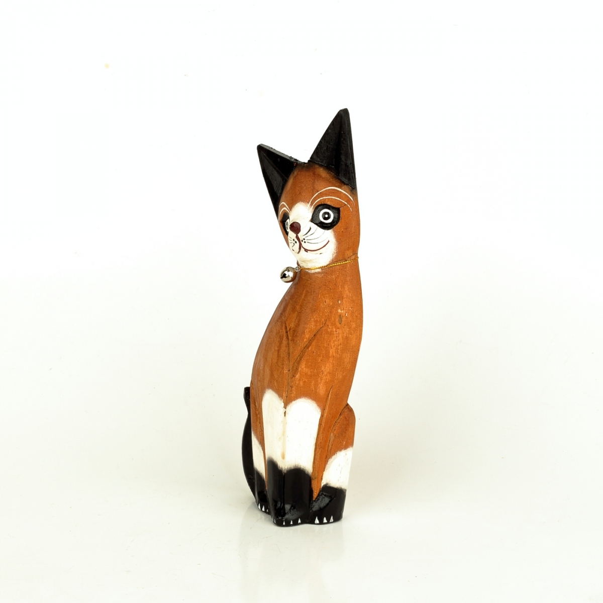 Drevená soška mačky je vyrezaná z ľahkého tropického dreva a ručne maľovaná rezbárom z ďalekej východnej Ázie.