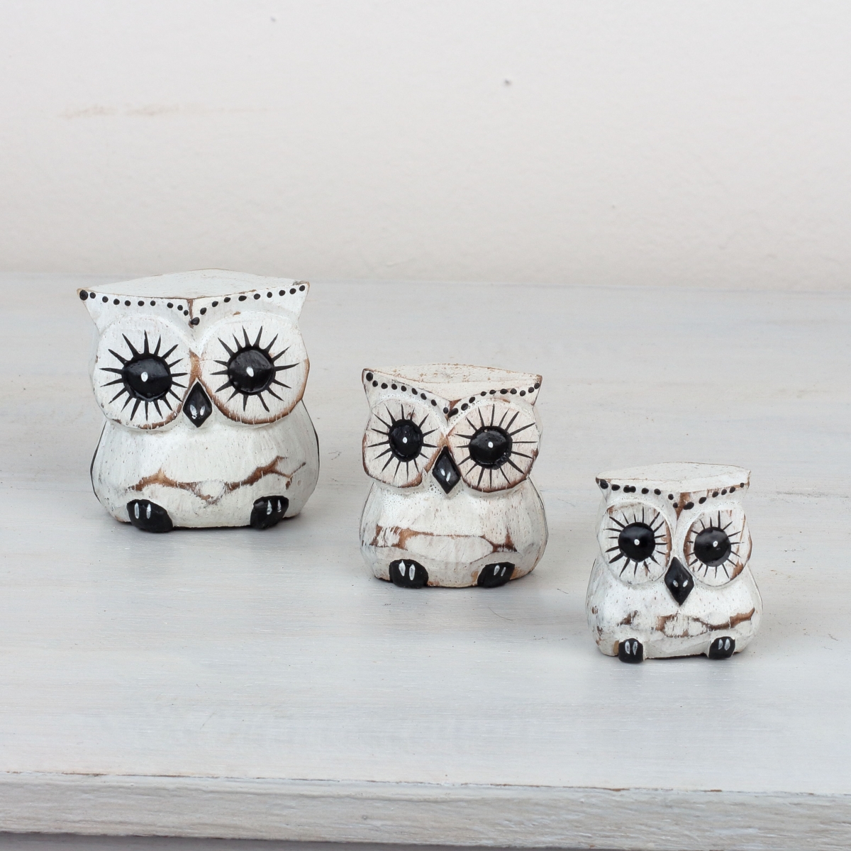 Drevená soška sova biela 6/4/3cm (set 3ks)