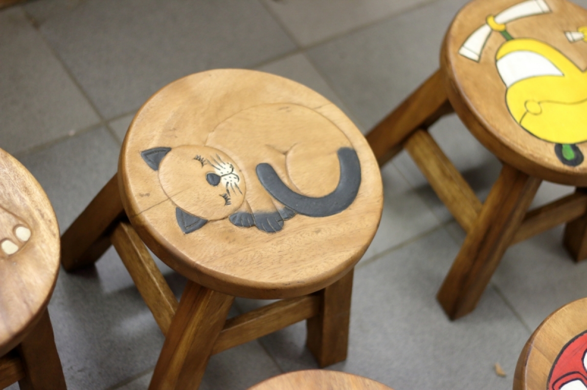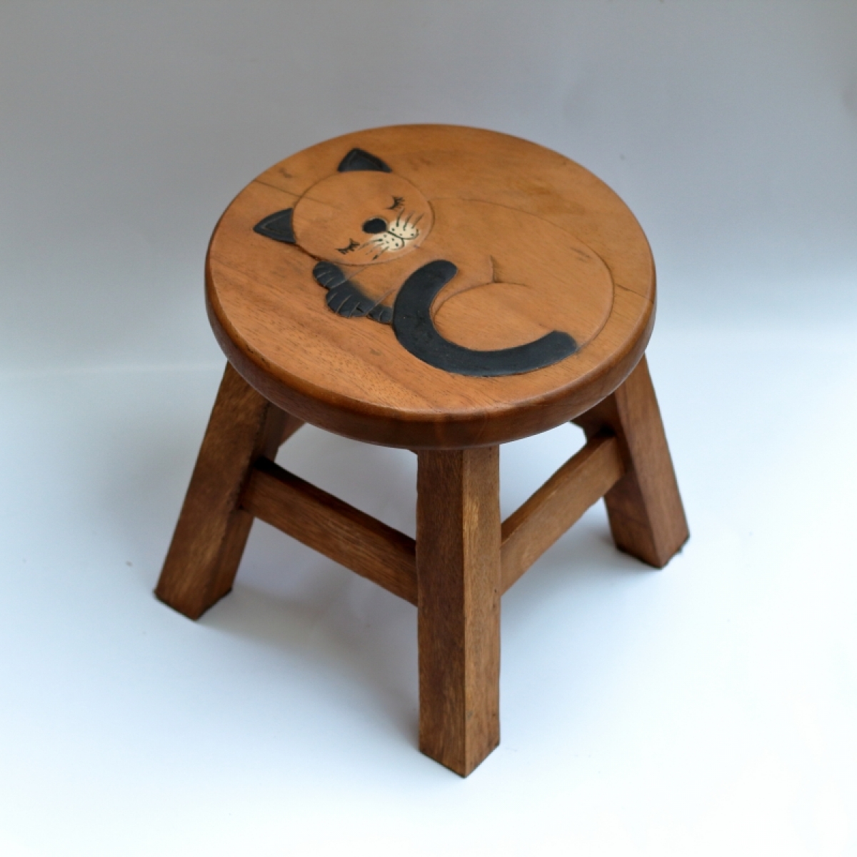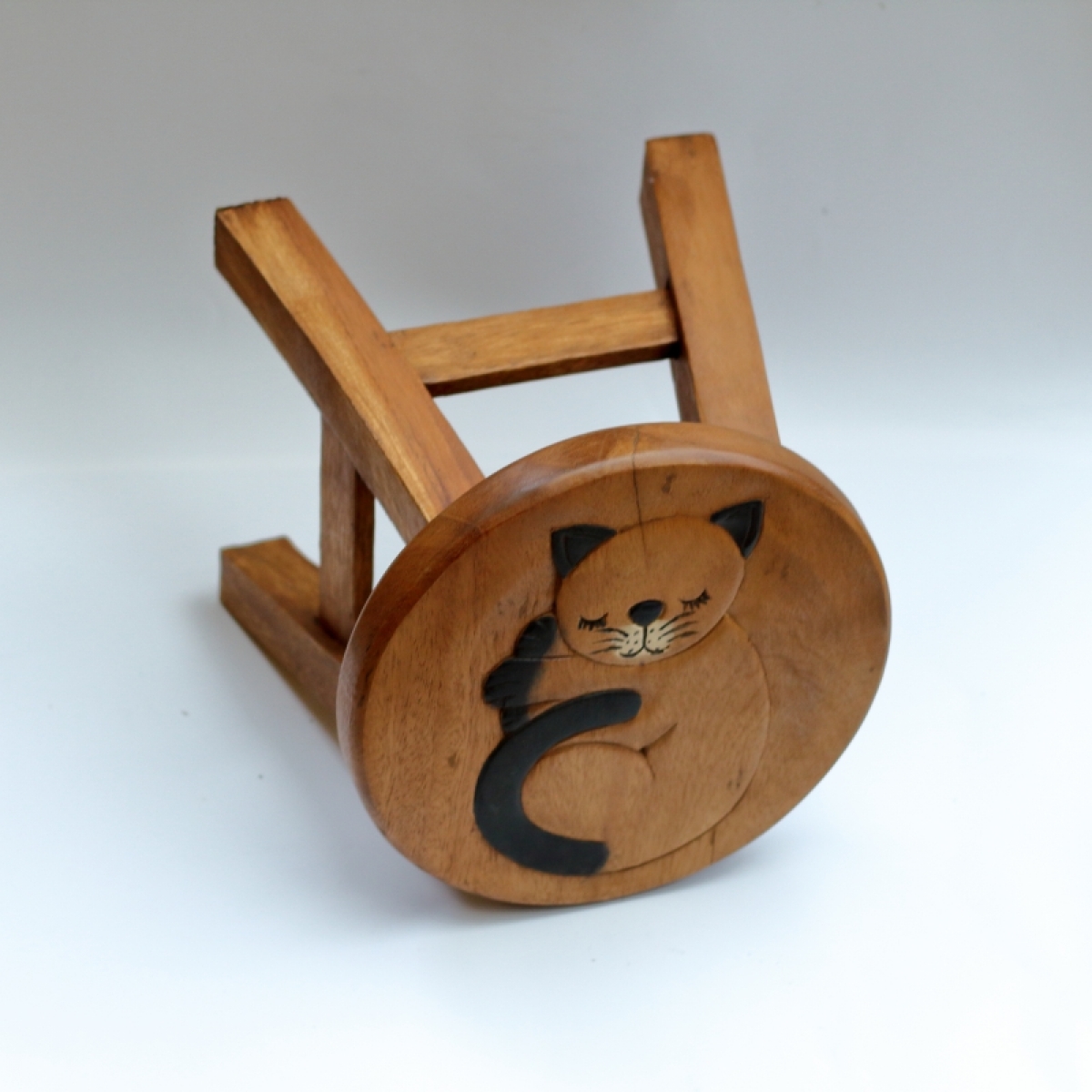 Drevená stolička spiaca mačka, je ručne vyrábaná z dreva akácie a je pri výrobe ošetrená prírodným olejom, ktorý zaistí dlhú životnosť materiálu.