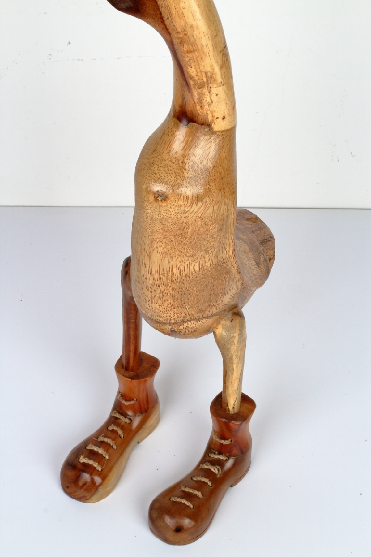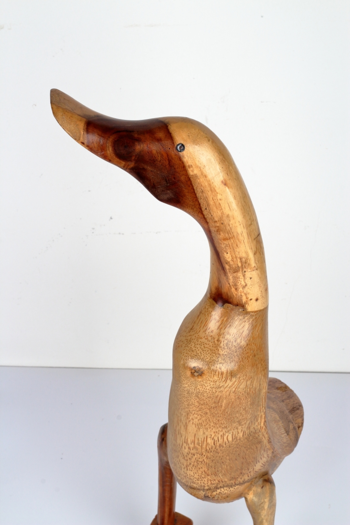 Drevená kačica je ručne vyrobená z tropického dreva. V ponuke ju nájdete v troch rôznych veľkostiach a niekoľkých typoch povrchových úprav. Táto je v lakovanej verzii.
