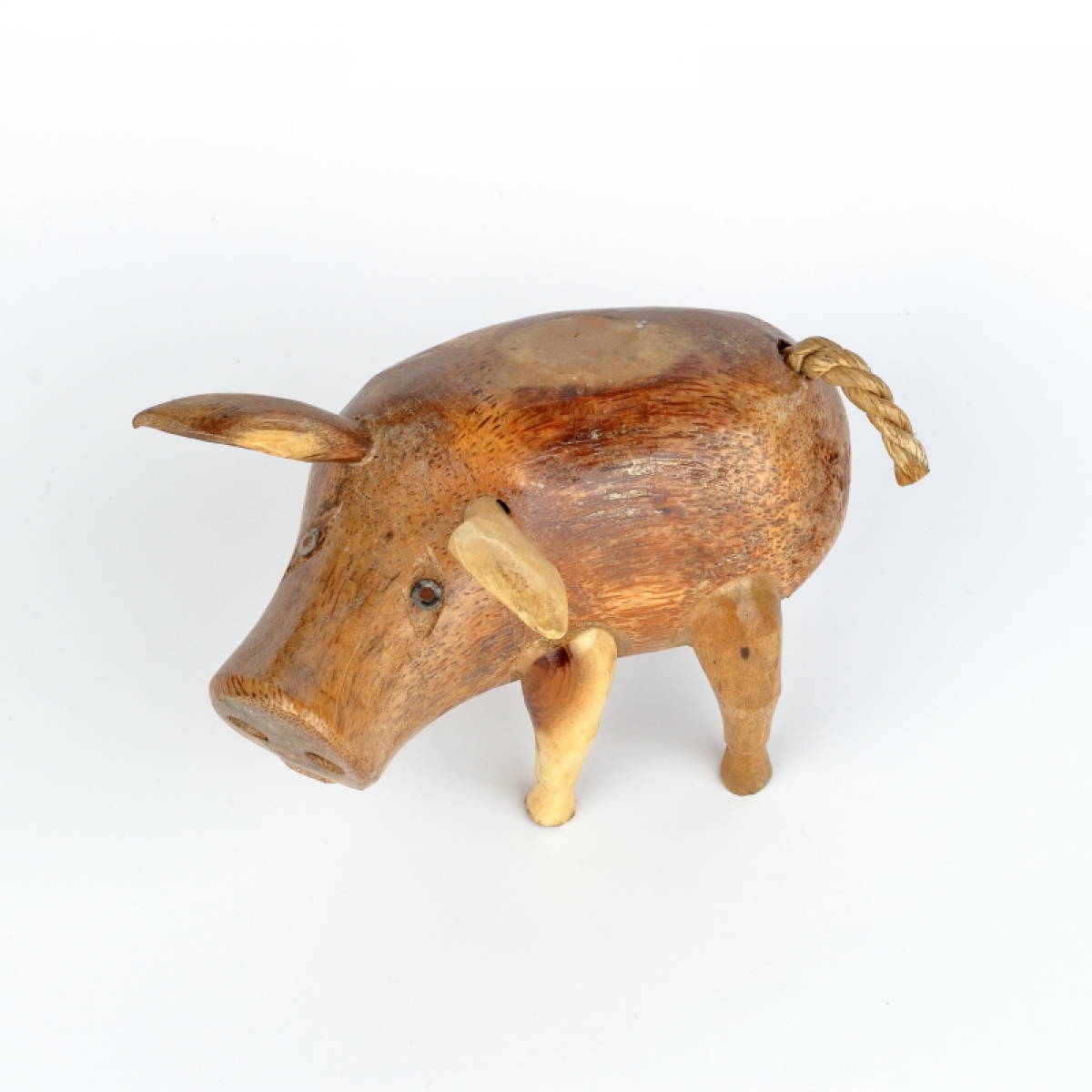 Drevená záhradná dekorácia prasa holé lakované 16x12cm