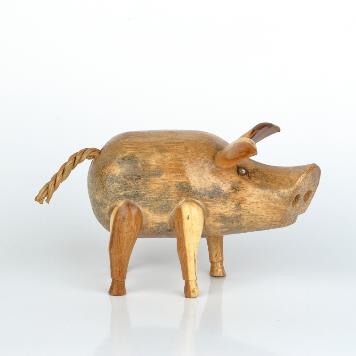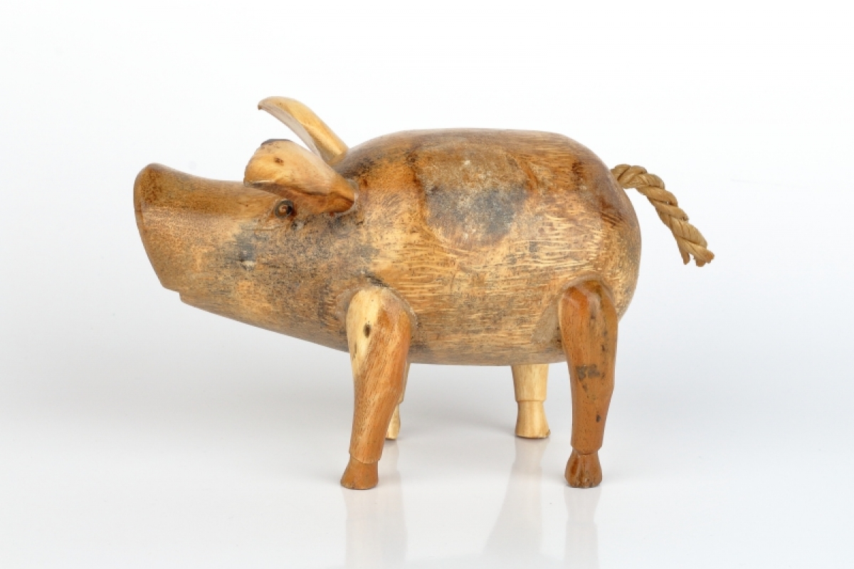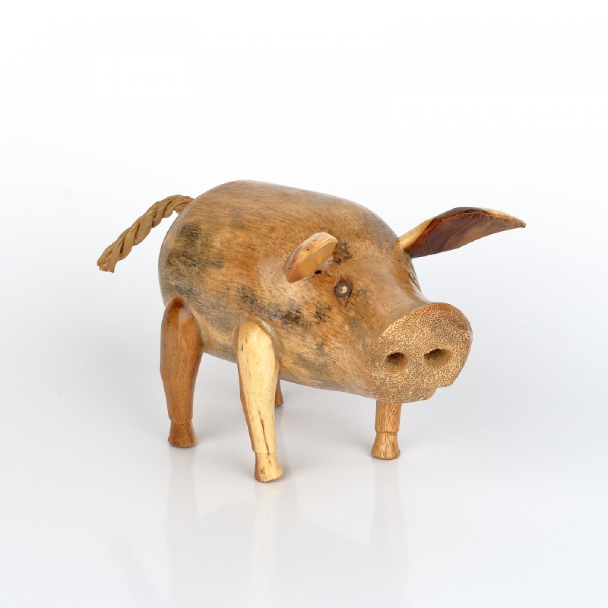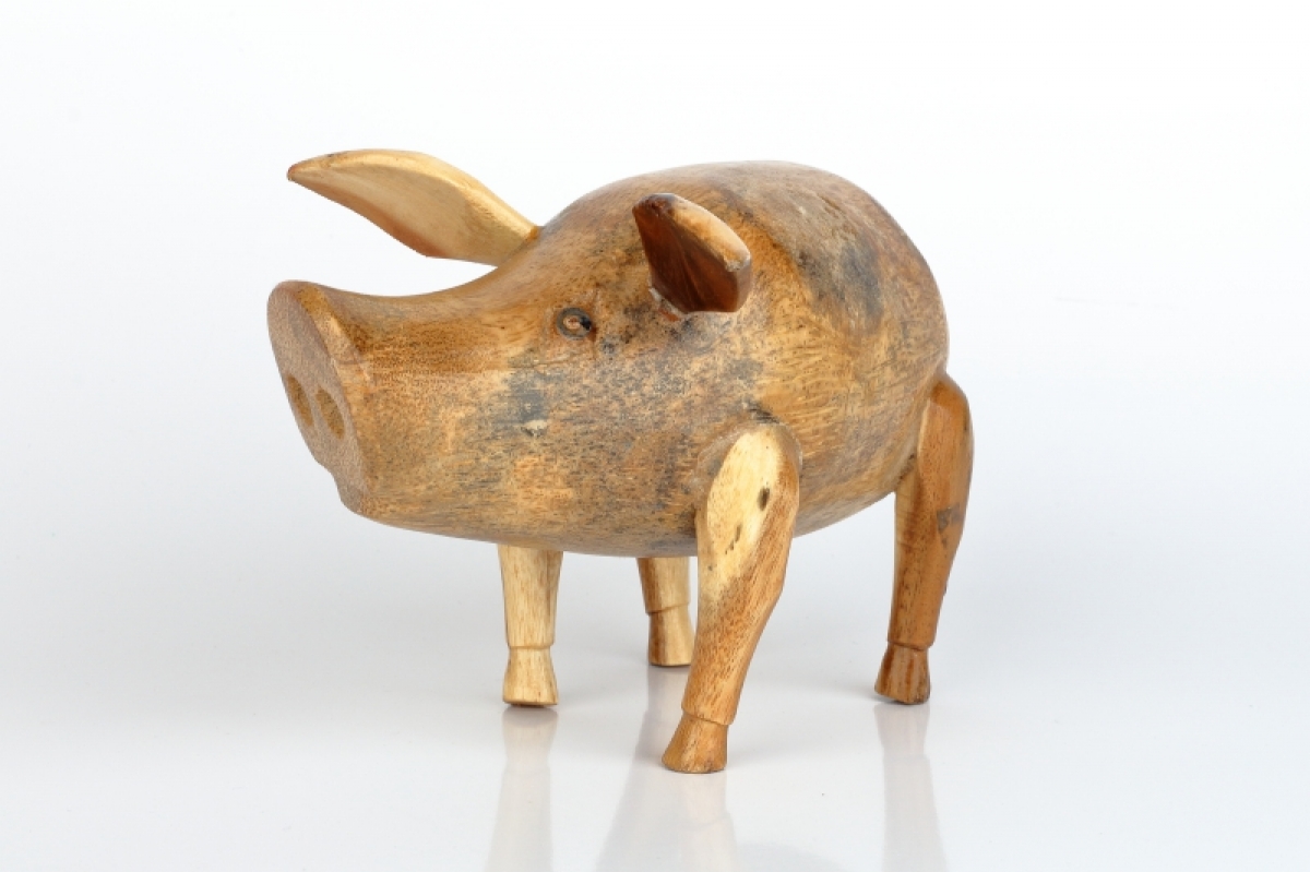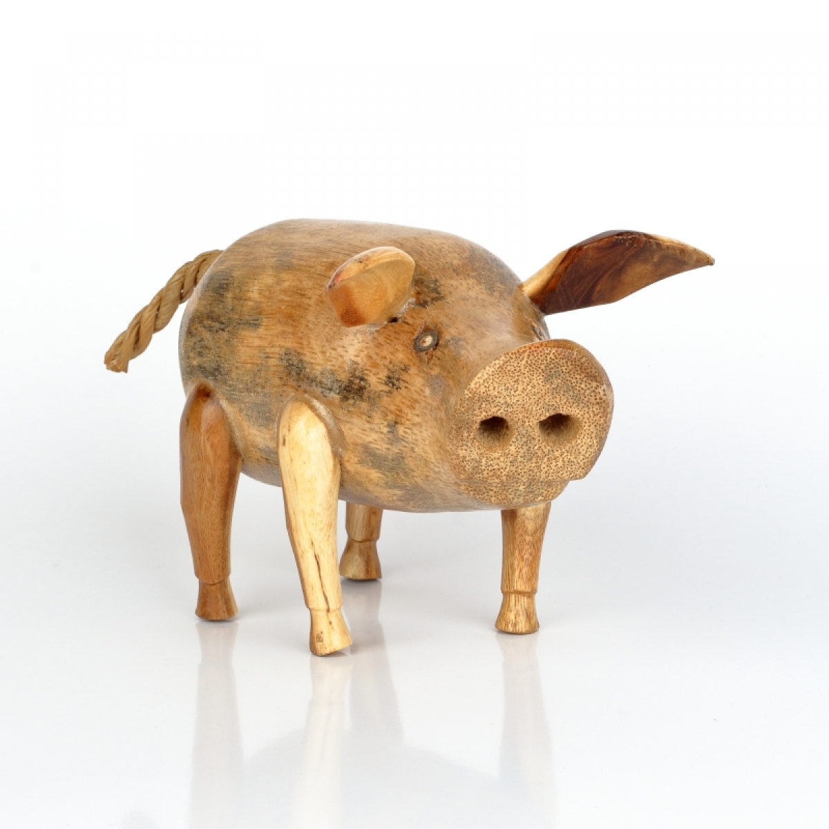 Drevená záhradná dekorácia prasa holé lakované (typ A) 18x15cm