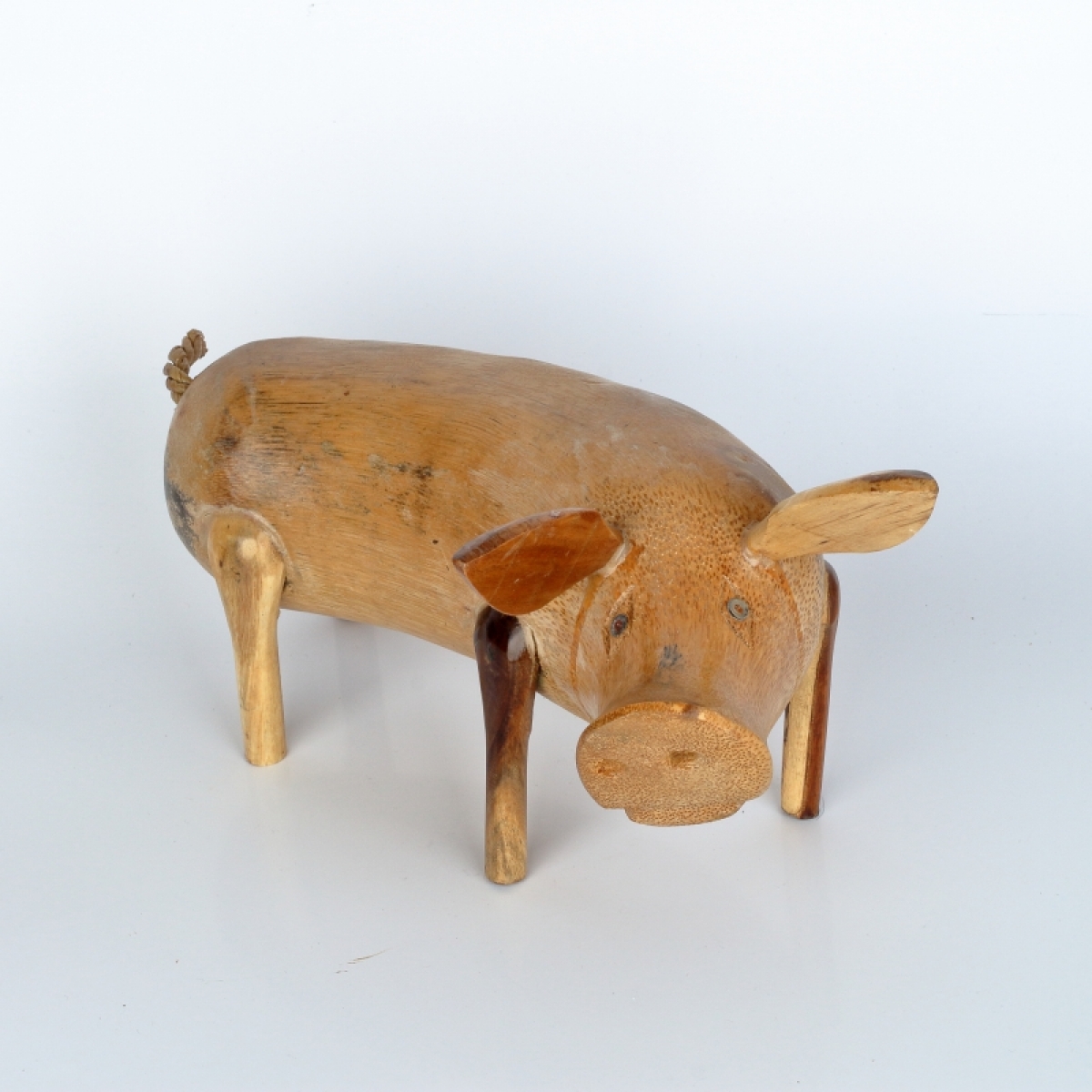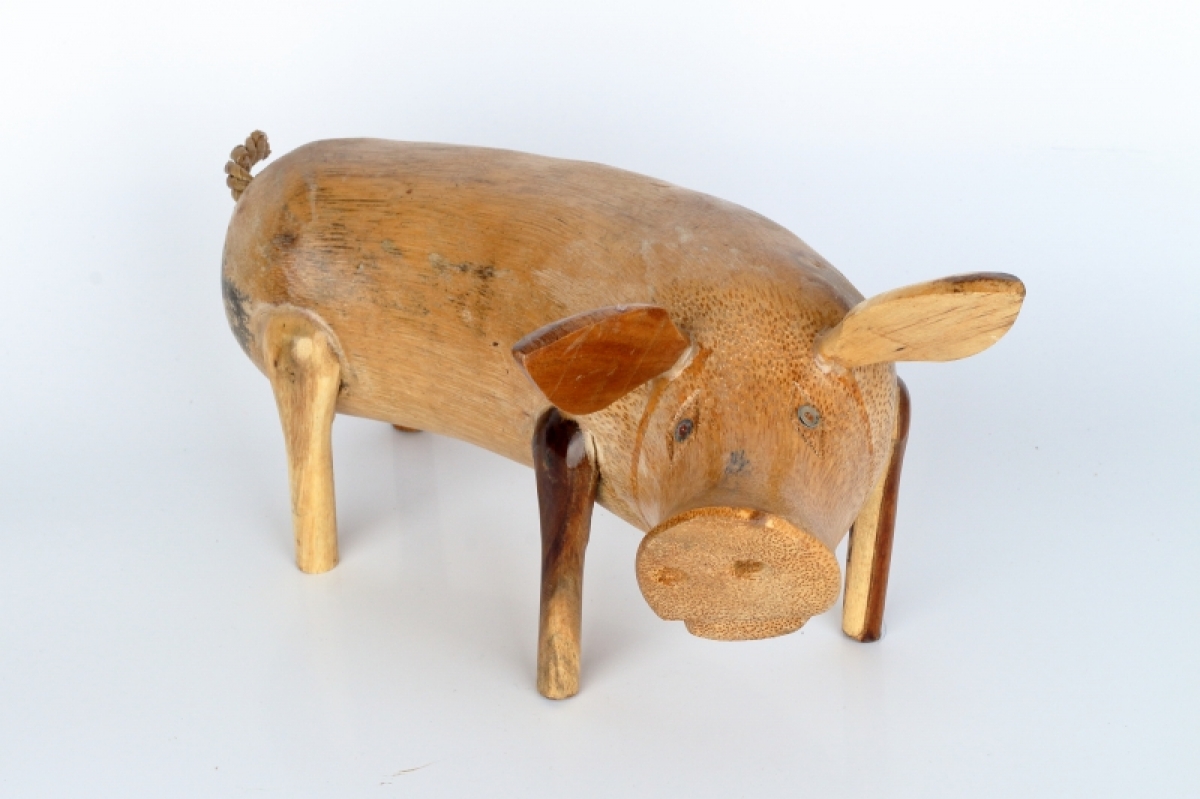 Drevená záhradná dekorácia prasa lakované 30x17cm je ručne vyrobená z tropického dreva. Môže zdobiť predzáhradku, terasu, ale pokojne prasiatku môžete nájsť miesto aj u Vás doma.