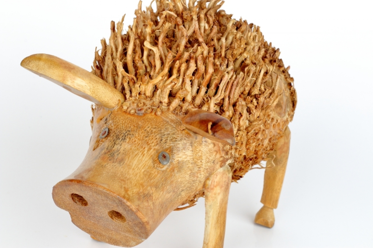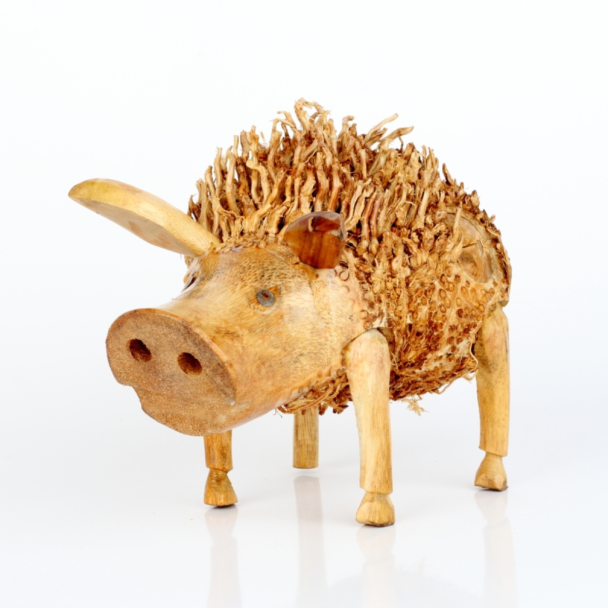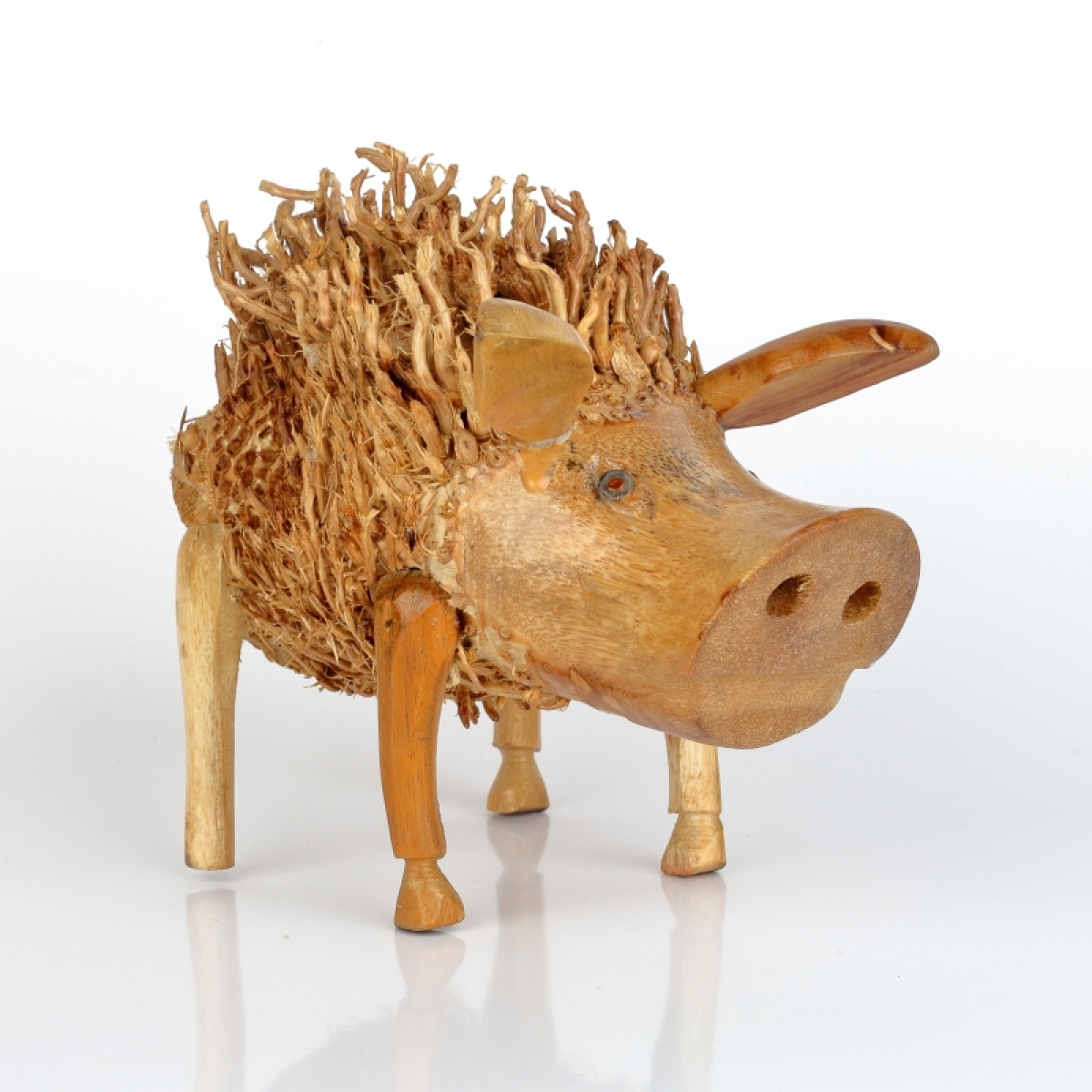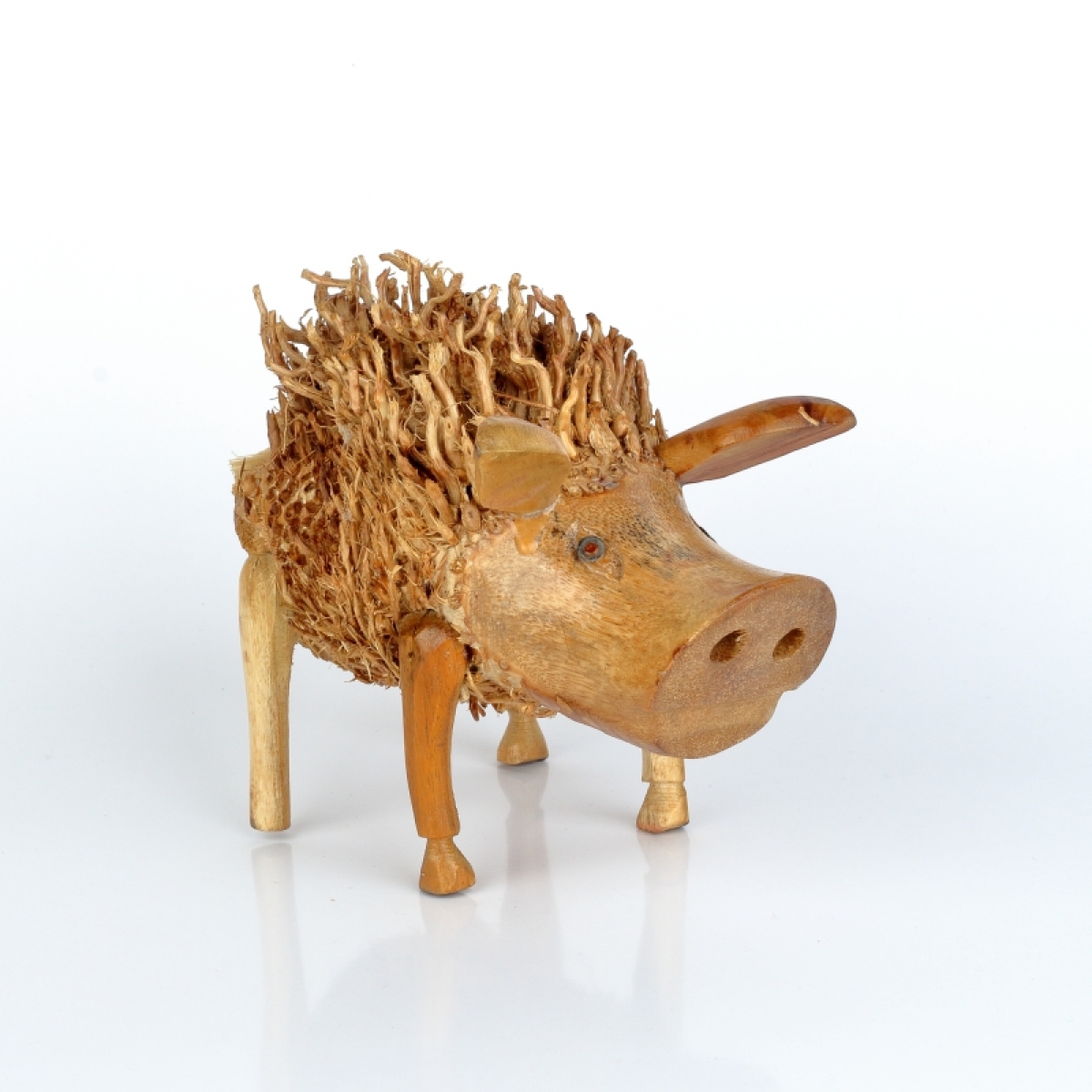 Drevená záhradná dekorácia prasa strapaté 20x16cm je ručne vyrobená z tropického dreva. Môže zdobiť predzáhradku, terasu, ale pokojne prasiatku môžete nájsť miesto aj u Vás doma.