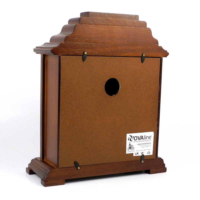 Hodiny strong> stolové sú vyrobené ručne z dreva. Ciferník je vyrobený z kovu, opatrený ornamenty. Farba zlatá na podklade, biela v mieste znázornenie času a čierna farba ornamentov. Retro doplnok k štýlovému nábytku.
